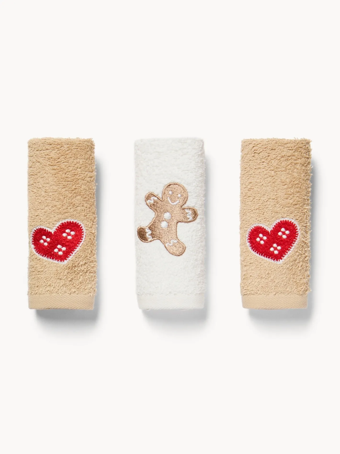 - Set 3 lavette (30×30) colorate in morbida spugna di cotone con ricamo natalizio