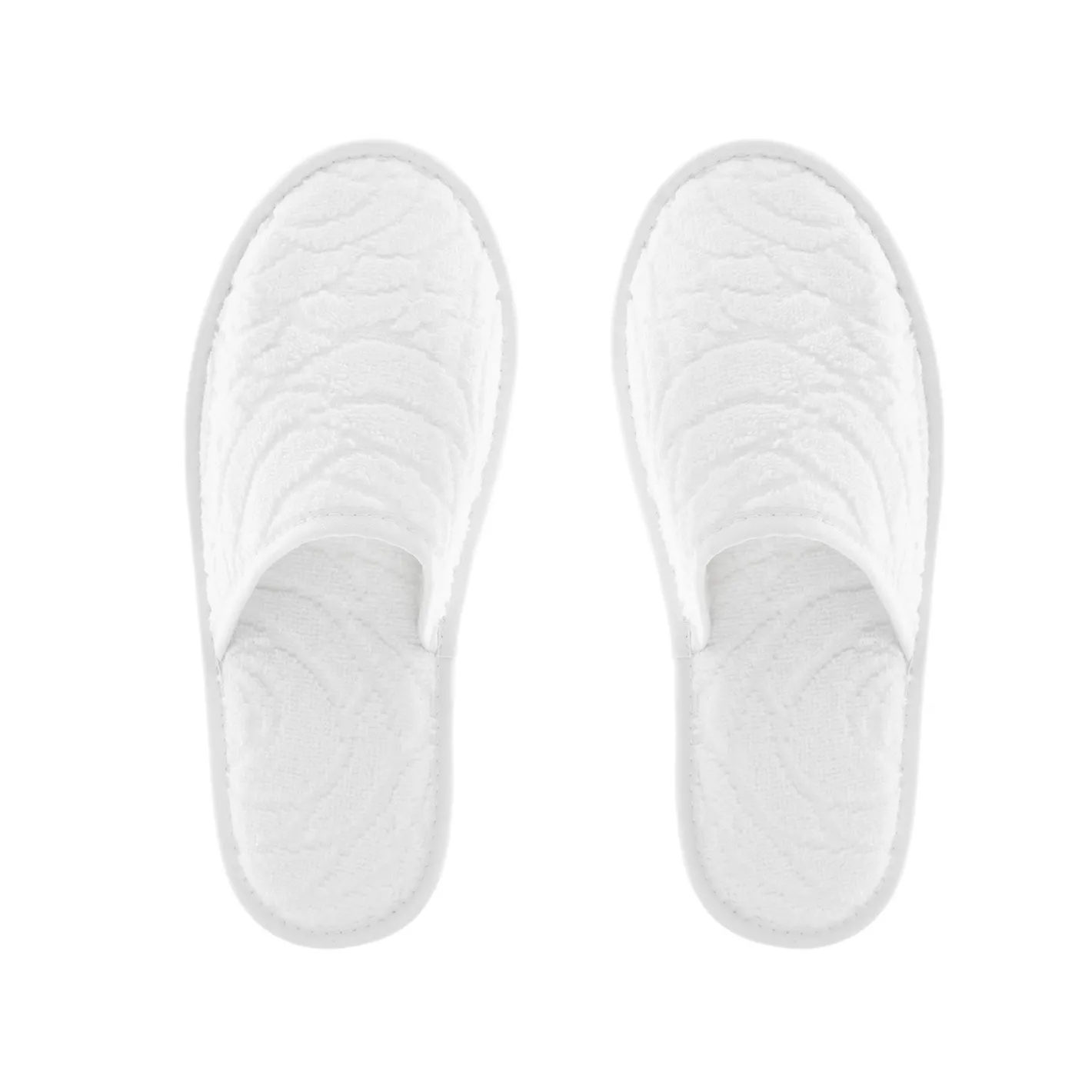 - Ciabatte Portofino in spugna zero twist di puro cotone tinta unita che dona un effetto soffice. Lavorazione jacquard in rilievo con motivo rose inglesi e suola antiscivolo. Grammatura: 430gr/m².