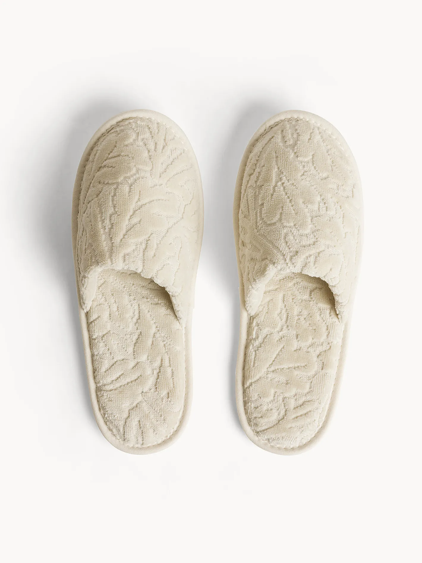 - Ciabatte in velour di puro cotone tinta unita con lavorazione a rilievo.