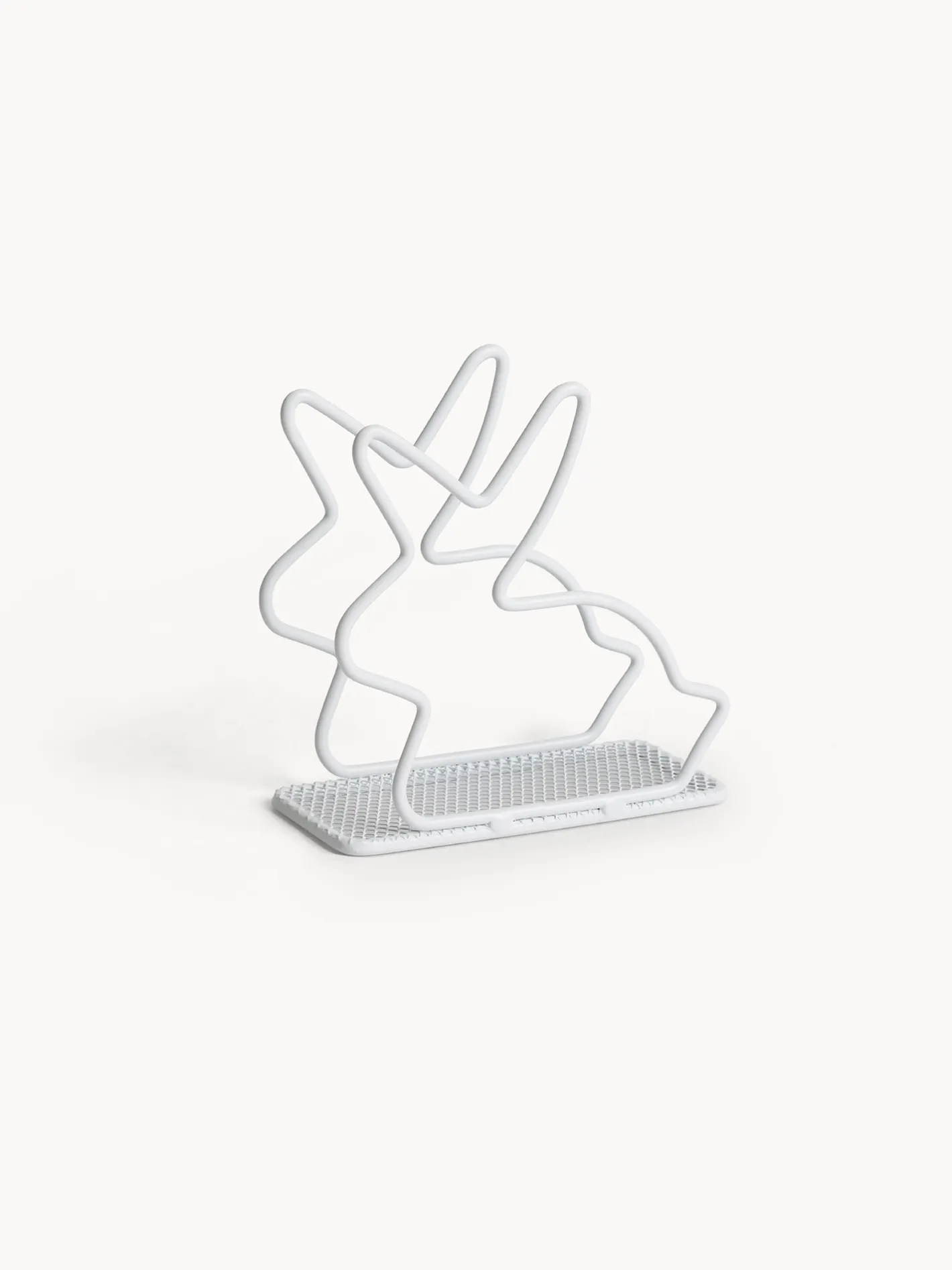 - Porta tovaglioli a coniglietto in ferro smaltato bianco.