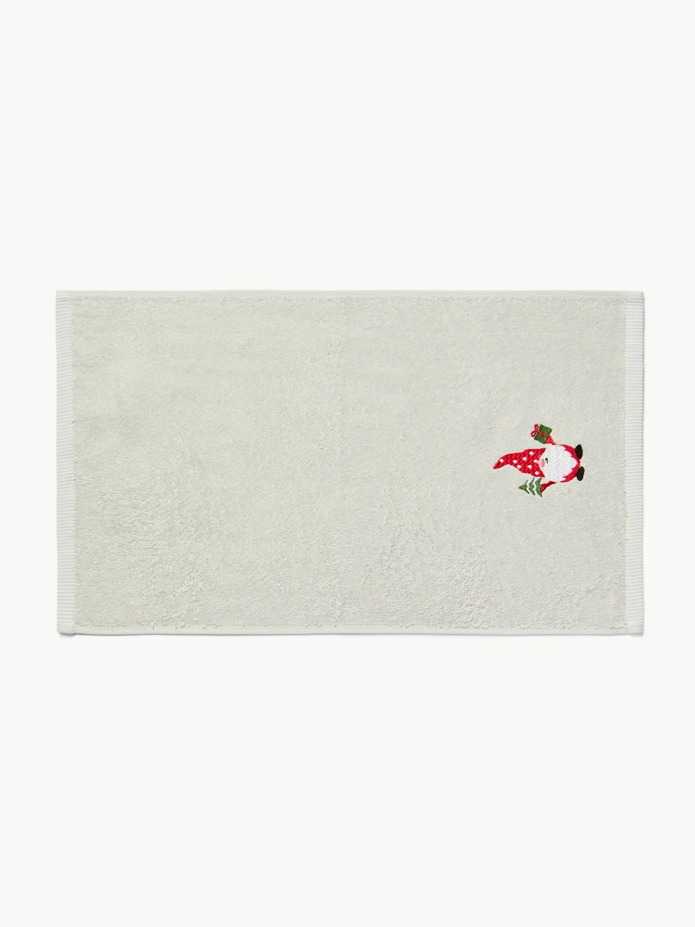 - Set natalizio composto da asciugamano ospite e viso (30×50+50×100) in spugna di puro cotone con gnomo natalizio ricamato su fondo grigio. Il regalo perfetto per un magico natale.