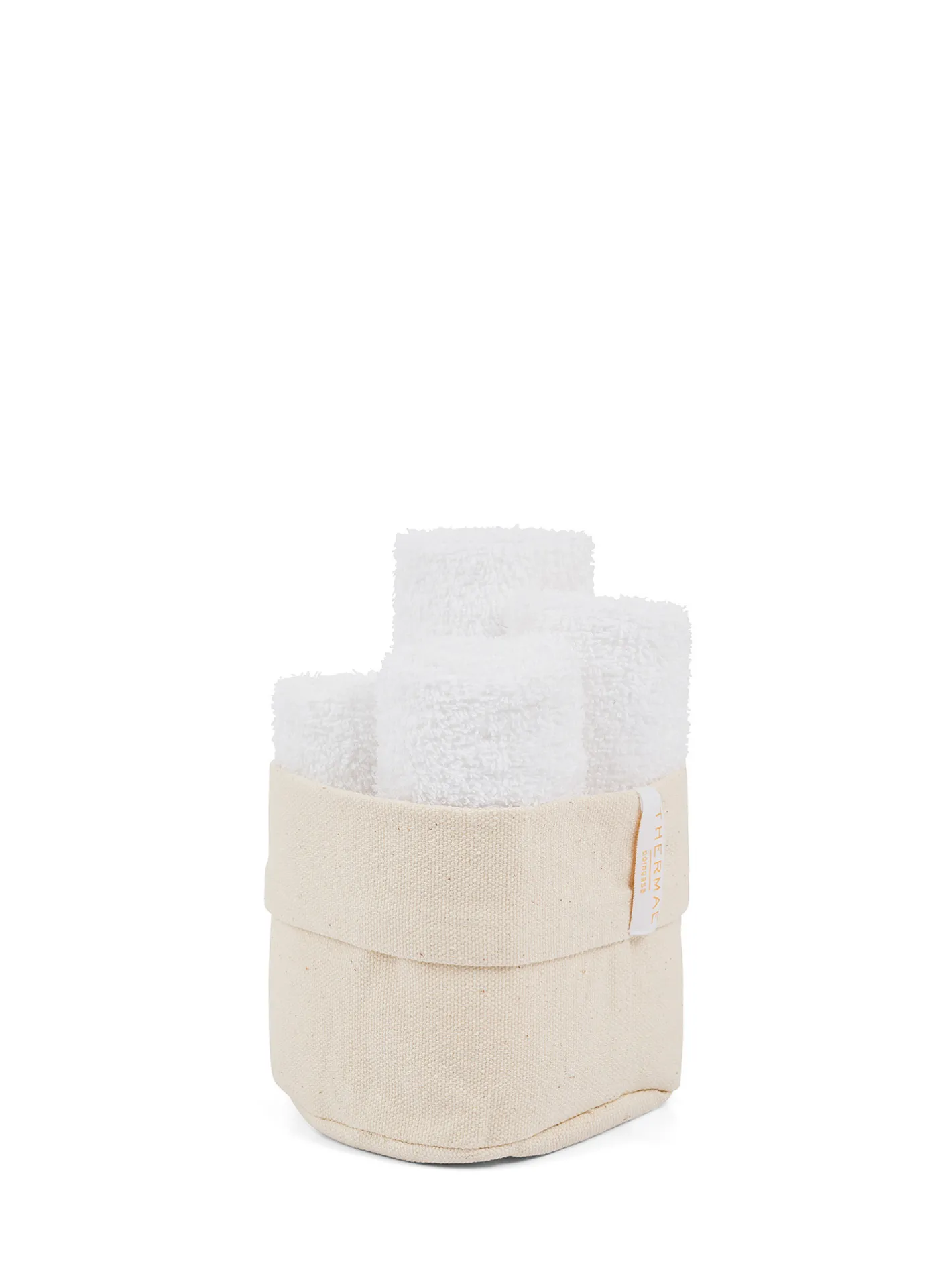 - Cestino in canvas di cotone, con 4 lavette 30X30 in spugna di cotone.