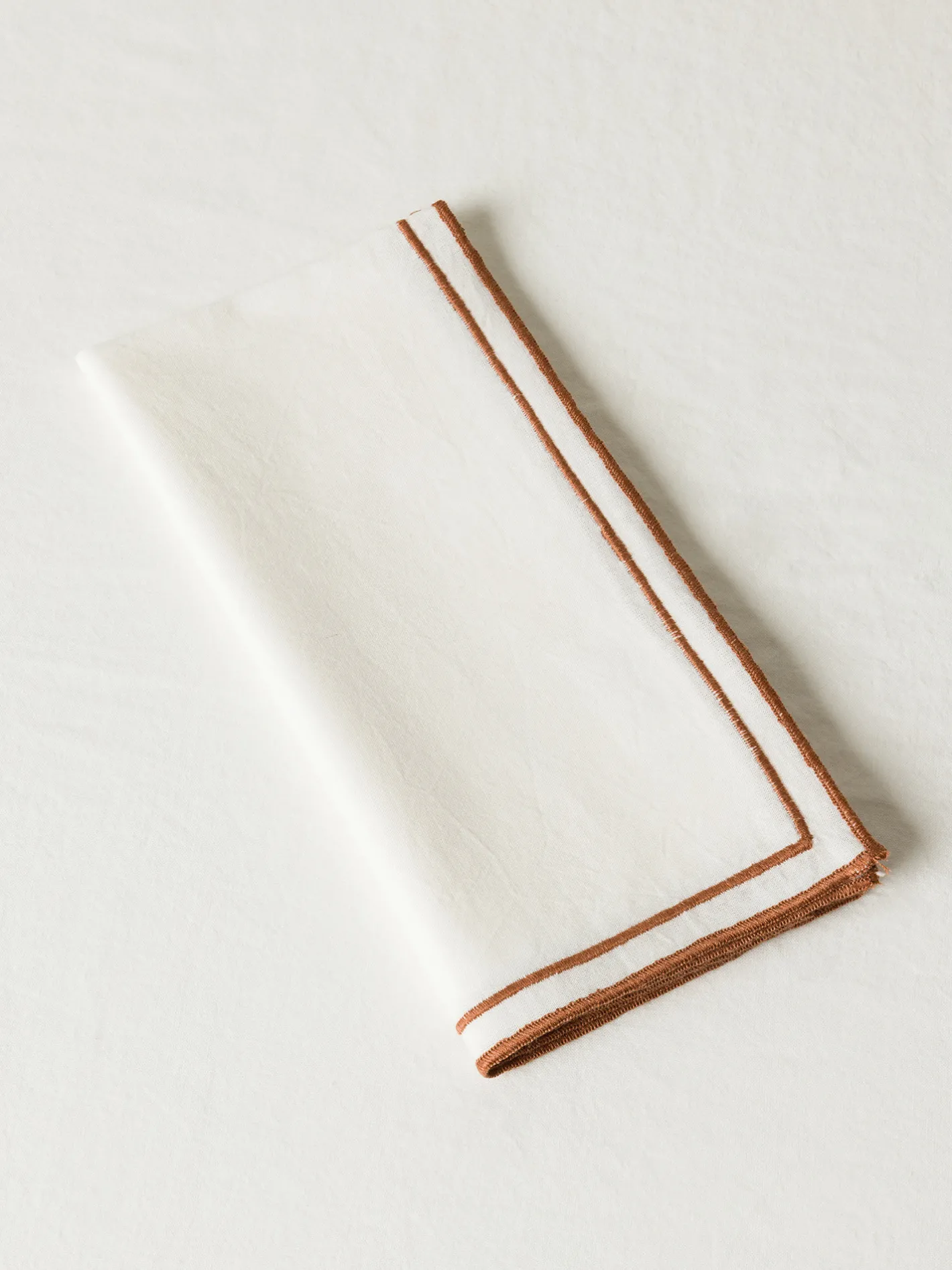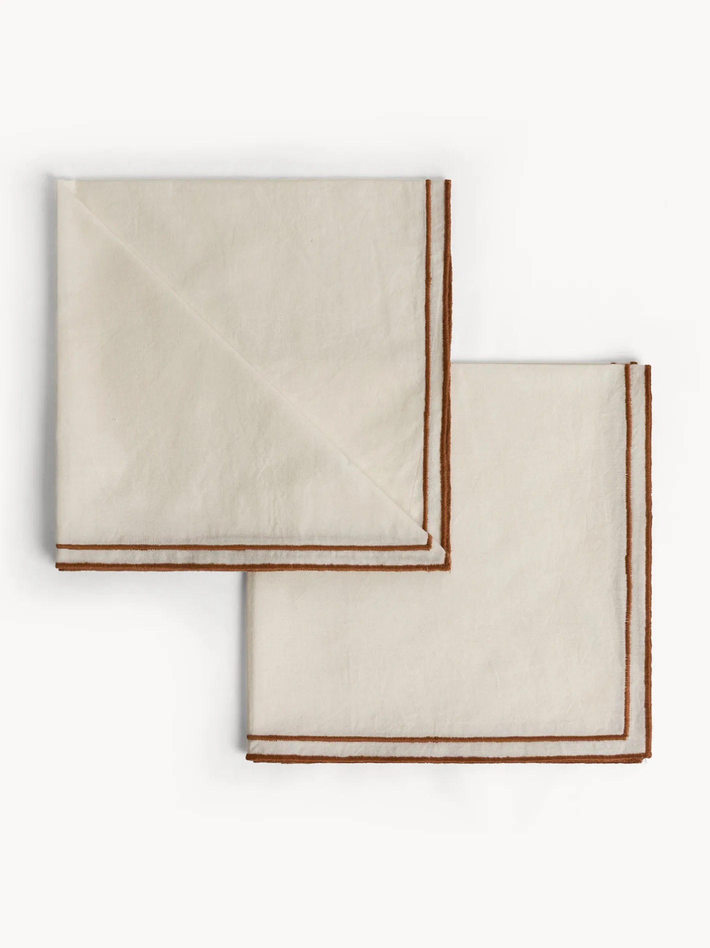- Set di 2 tovaglioli in puro cotone, impreziositi da un raffinato doppio overlock a contrasto che dona un tocco di stile alla tavola. Morbidi, resistenti e facili da abbinare, sono l’accessorio ideale per completare con eleganza ogni mise en place, dal pranzo quotidiano alle occasioni speciali.