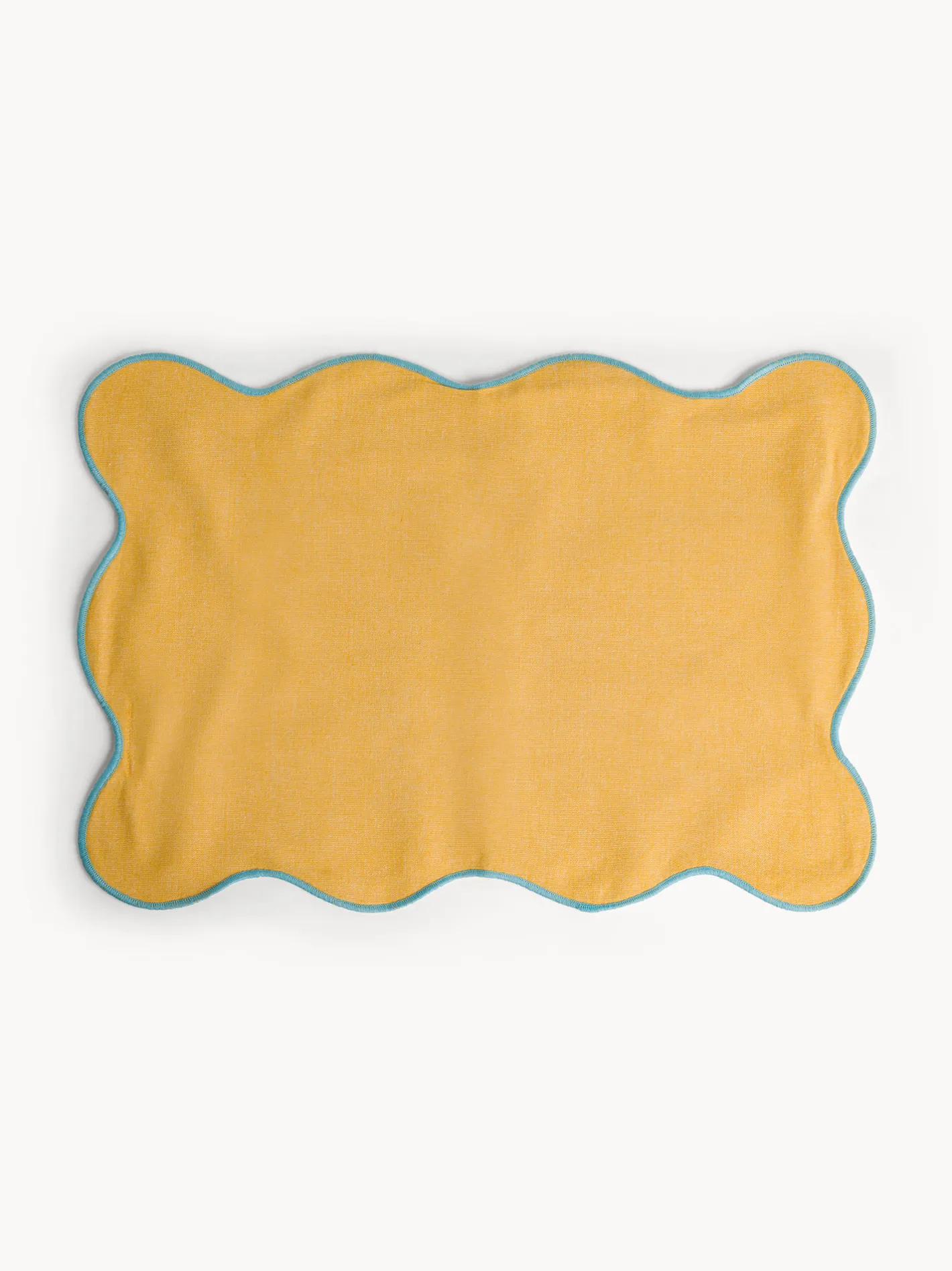 - Tovaglietta in cotone chambray con bordi smerlati e overlock a contrasto. Disponibile in 12 colori.