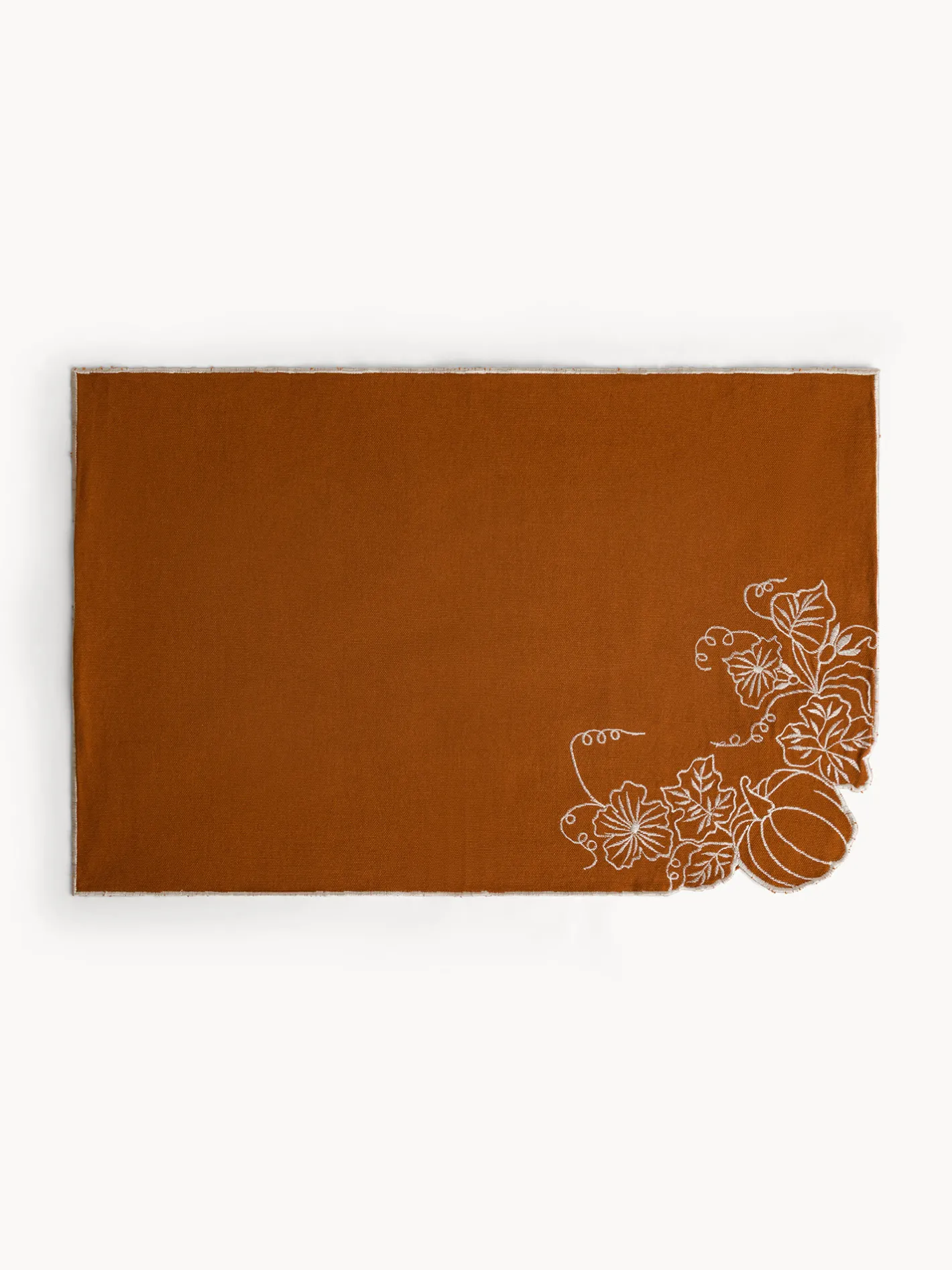 - Tovaglietta in puro cotone arricchita da un raffinato ricamo smerlato a forma di zucche e da un elegante overlock a contrasto, pensata per portare un tocco di stile e originalità alla tavola autunnale. Morbida, resistente e curata nei dettagli, unisce funzionalità e design, trasformando ogni pasto in un momento accogliente e festoso. Perfetta da abbinare a tovaglie, runner e accessori coordinati, questa tovaglietta diventa un elemento decorativo distintivo che valorizza ogni mise en place, combinando charme stagionale e artigianalità di qualità.