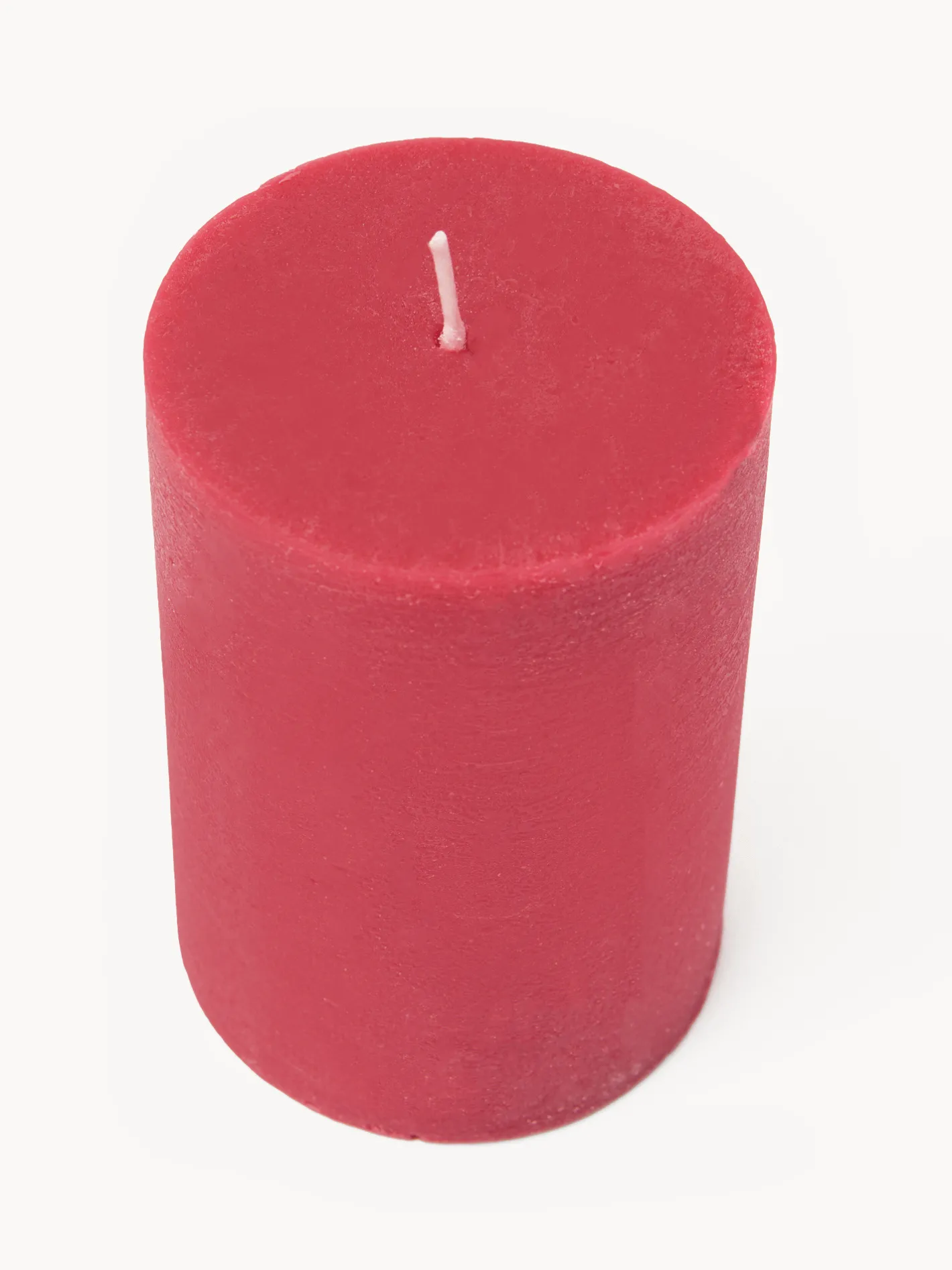 - Set di 3 candele in 3 differenti misure e sfumature di rosso (7×13+7×10+7x8cm), 30% cera di soia