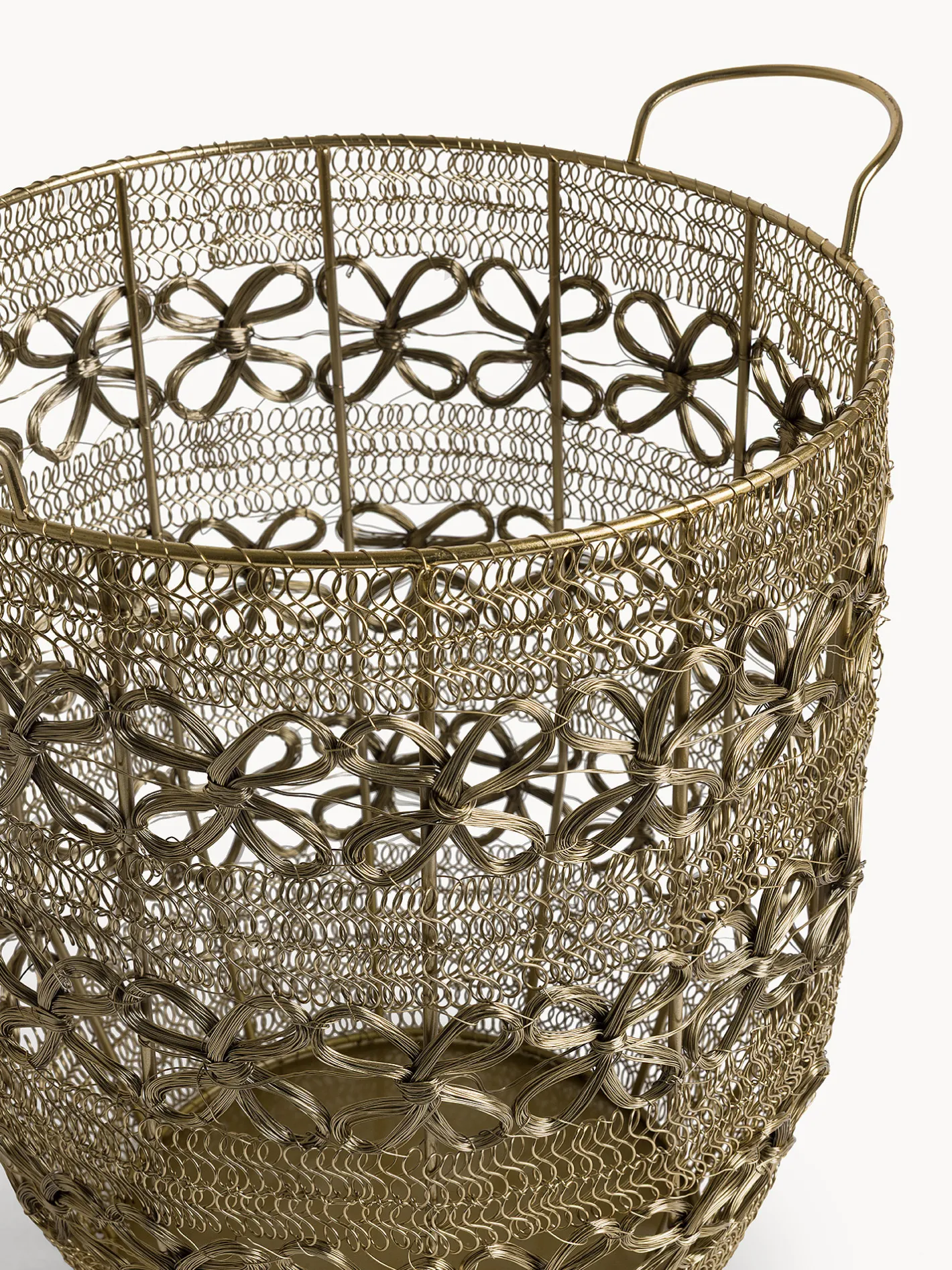 - Cesto decorativo, realizzato a mano in filo metallico dorato. Ogni intreccio racconta una storia di artigianato e stile, dando vita a un oggetto unico, perfetto per arricchire la tua casa con un dettaglio luminoso e sofisticato.Ideale come portaoggetti o semplice elemento d’arredo, questo cesto unisce design moderno e lavorazione tradizionale per un effetto visivo sorprendente.