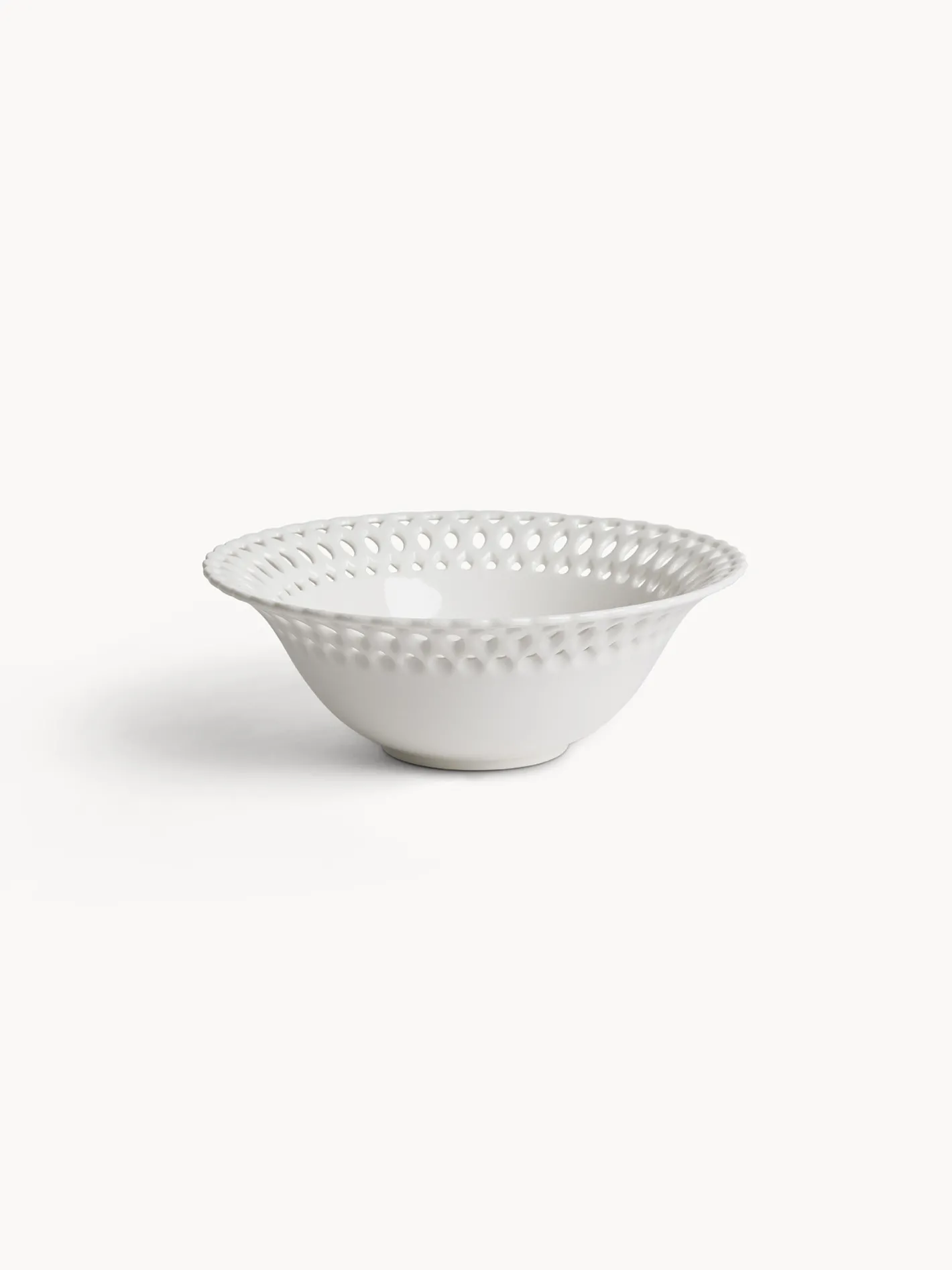 - Coppa in porcellana traforata dallo stile raffinato ed elegante.