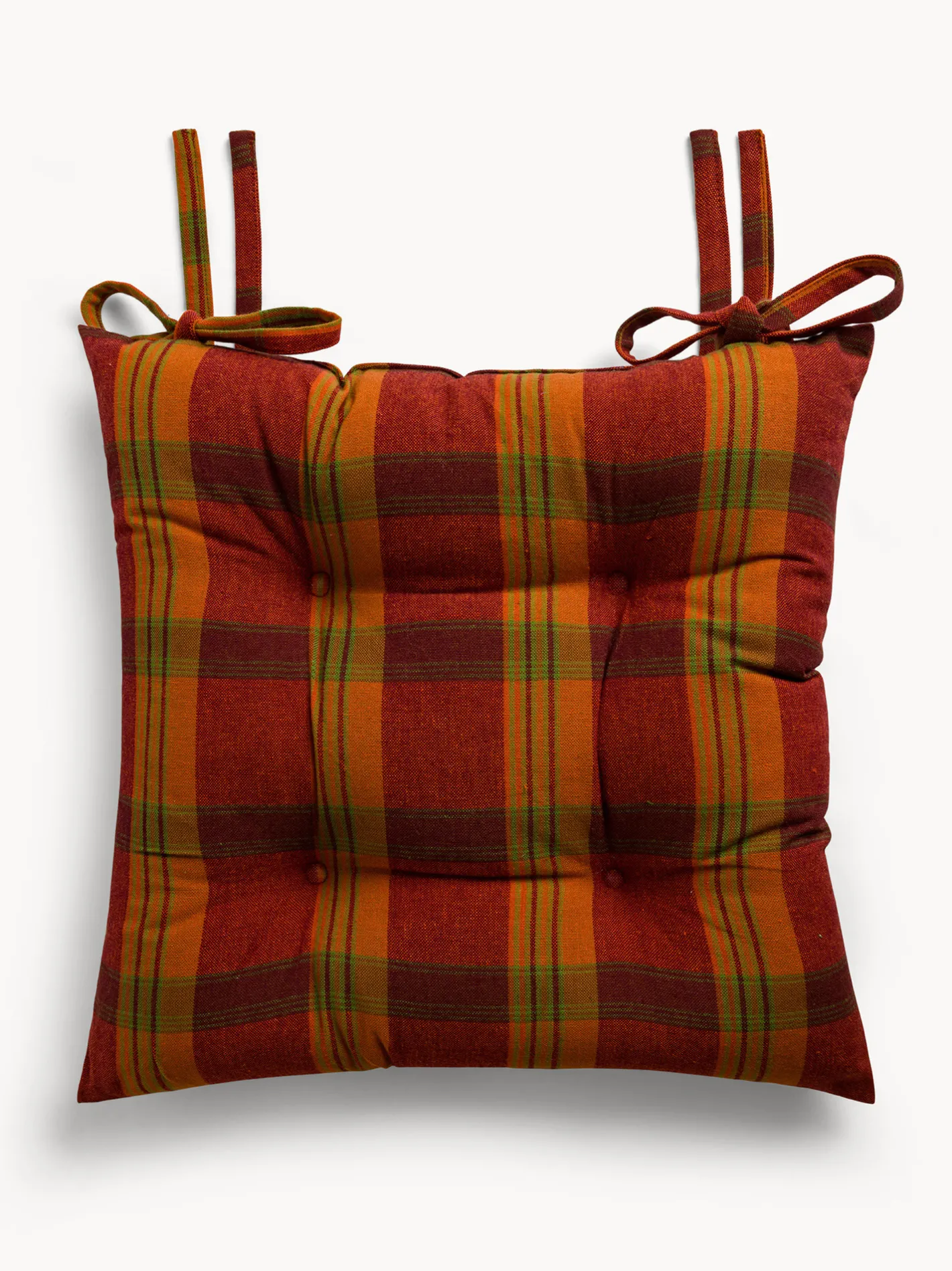 coincasa Cuscini Per Sedie|Cuscino da sedia con lacci motivo check in puro cotone tinto filo Arancione