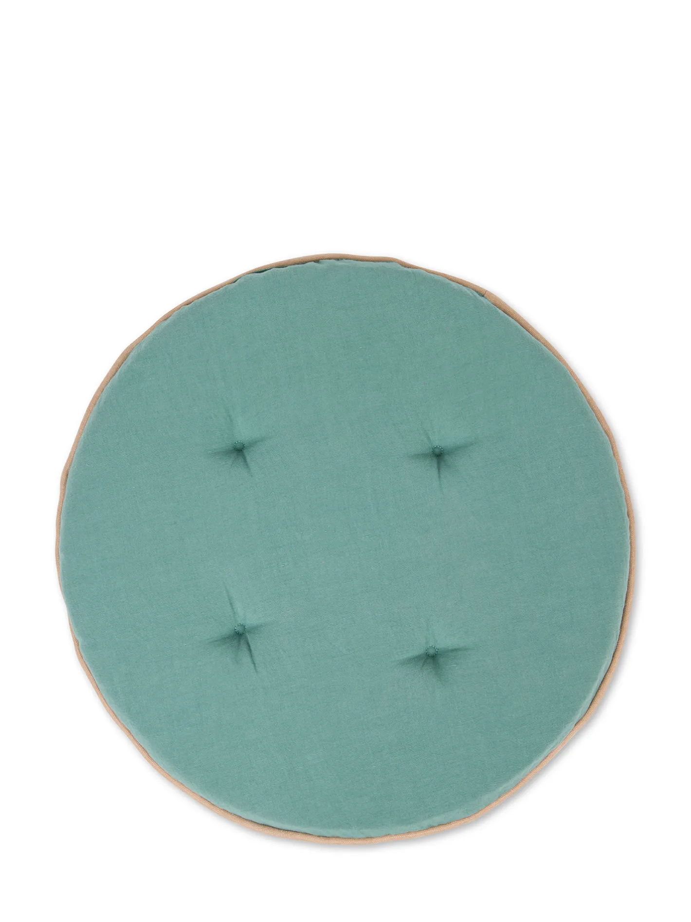 - Cuscino da sedia rotondo tinta unita in misto lino lavato con piping a contrasto.