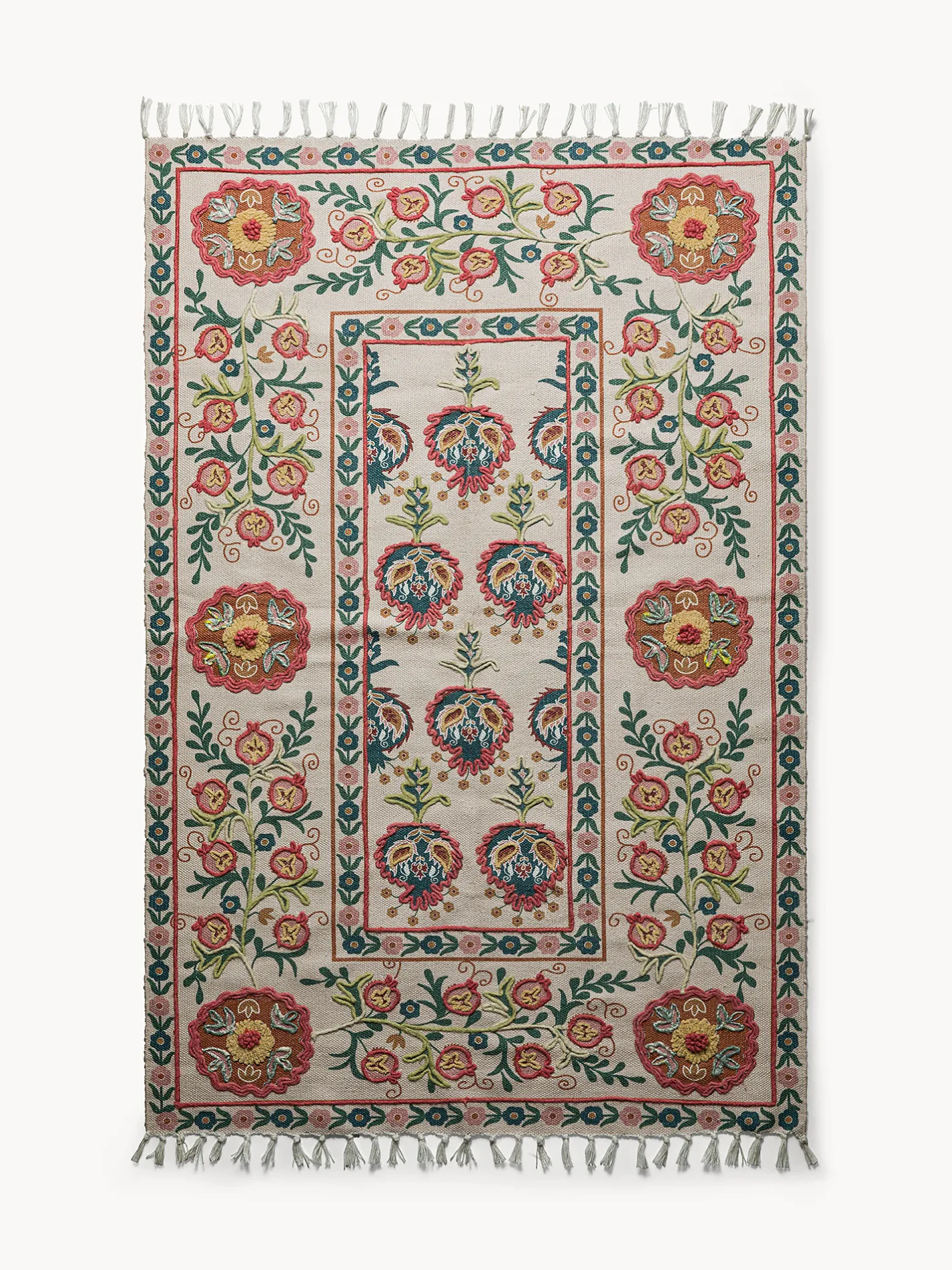 coincasa Tappeti Soggiorno|Tappeto rettangolare tessuto e ricamato a mano con motivo floreale Beige