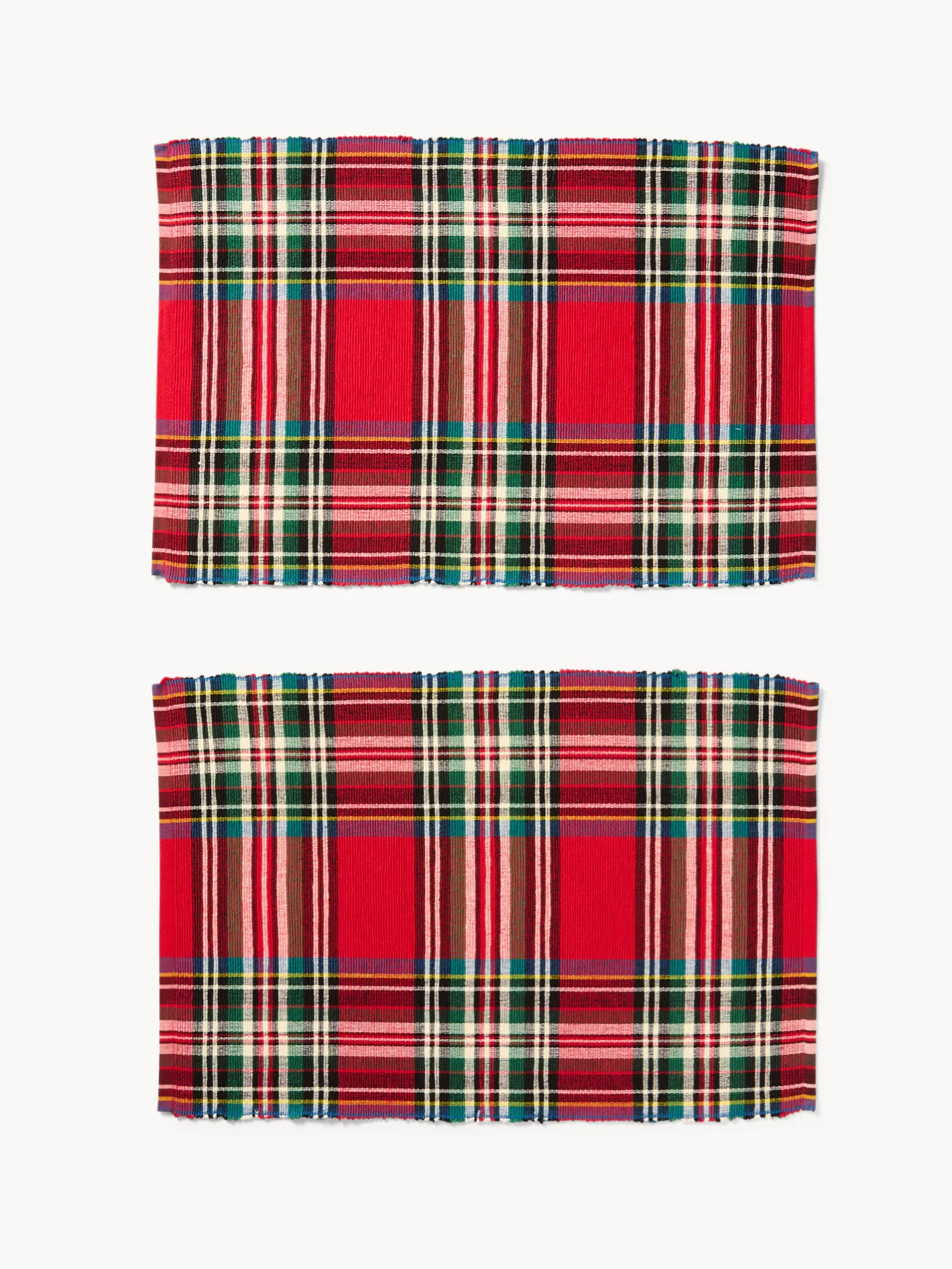 - Set di 2 tovagliette tartan a costine in puro cotone tinto filo. Le tovagliette sono in puro cotone tinto filo con una struttura a costine, che le consente di essere piegata o arrotolata facilmente. Il classico motivo tartan riporta calore e accoglienza alla tavola durante le festività.