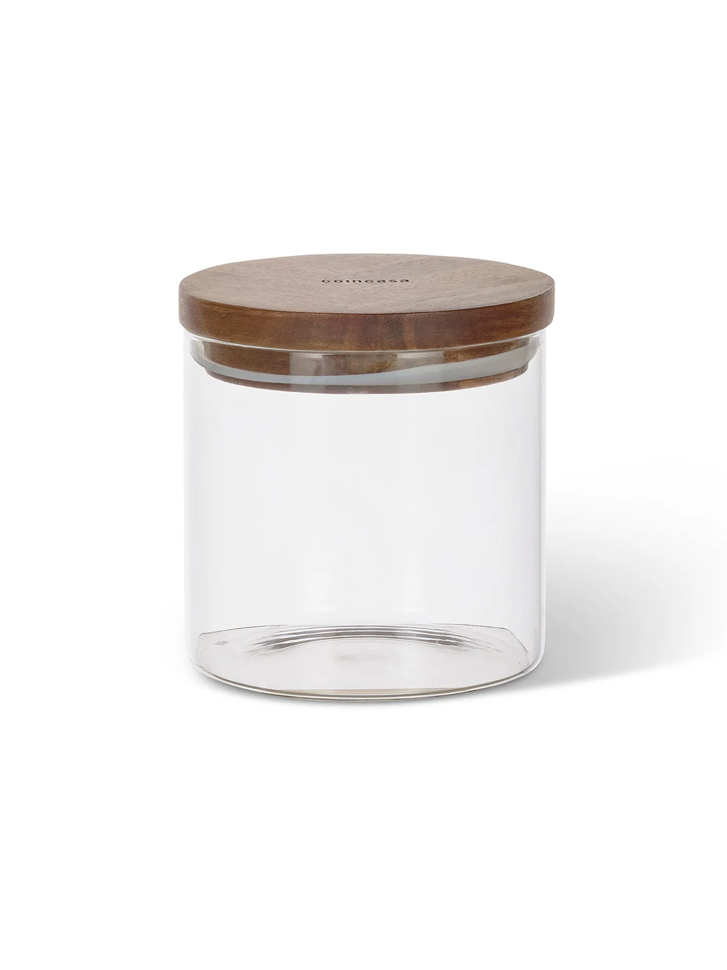 - Questi eleganti barattoli in vetro trasparente con coperchio in legno di Acacia sono perfetti per conservare ingredienti secchi o biscotti, combinando estetica e praticità.