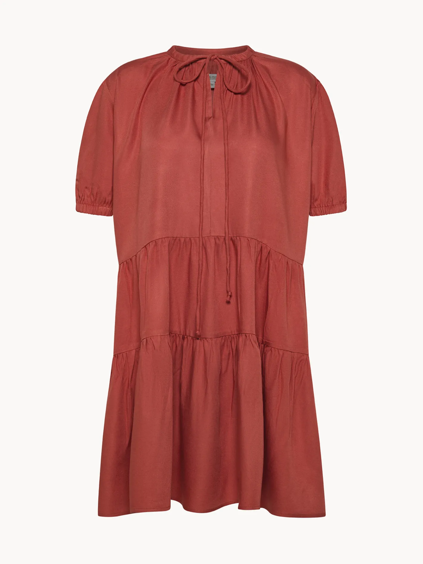 - Vestito a balze in Twill di viscosa con scollo a V e nastri da annodare sul davanti. Manica corta e morbida con elastico. Tessuto cascante e fresco, perfetto per le tue giornate estive.