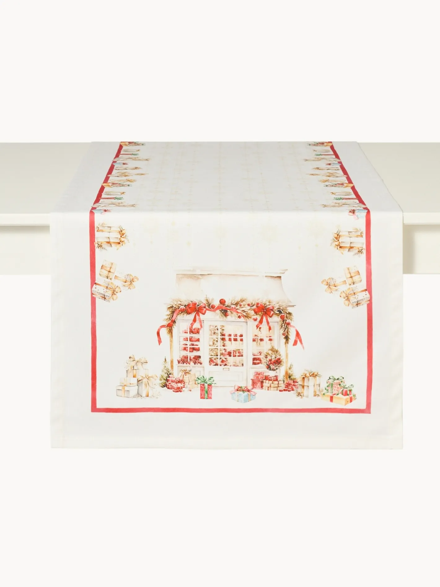 - Runner “Boutique” by Tessitura Randi. Realizzato in pregiato drill di puro cotone stampato, il runner della linea “Boutique” porta sulla tavola tutta la calda atmosfera del Natale. La stampa dal forte richiamo natalizio, impreziosita da dettagli eleganti, aggiunge un tocco di stile e trasforma ogni pasto in un momento speciale. 100% Made in Italy, sinonimo di qualità, tradizione artigianale e cura sartoriale.