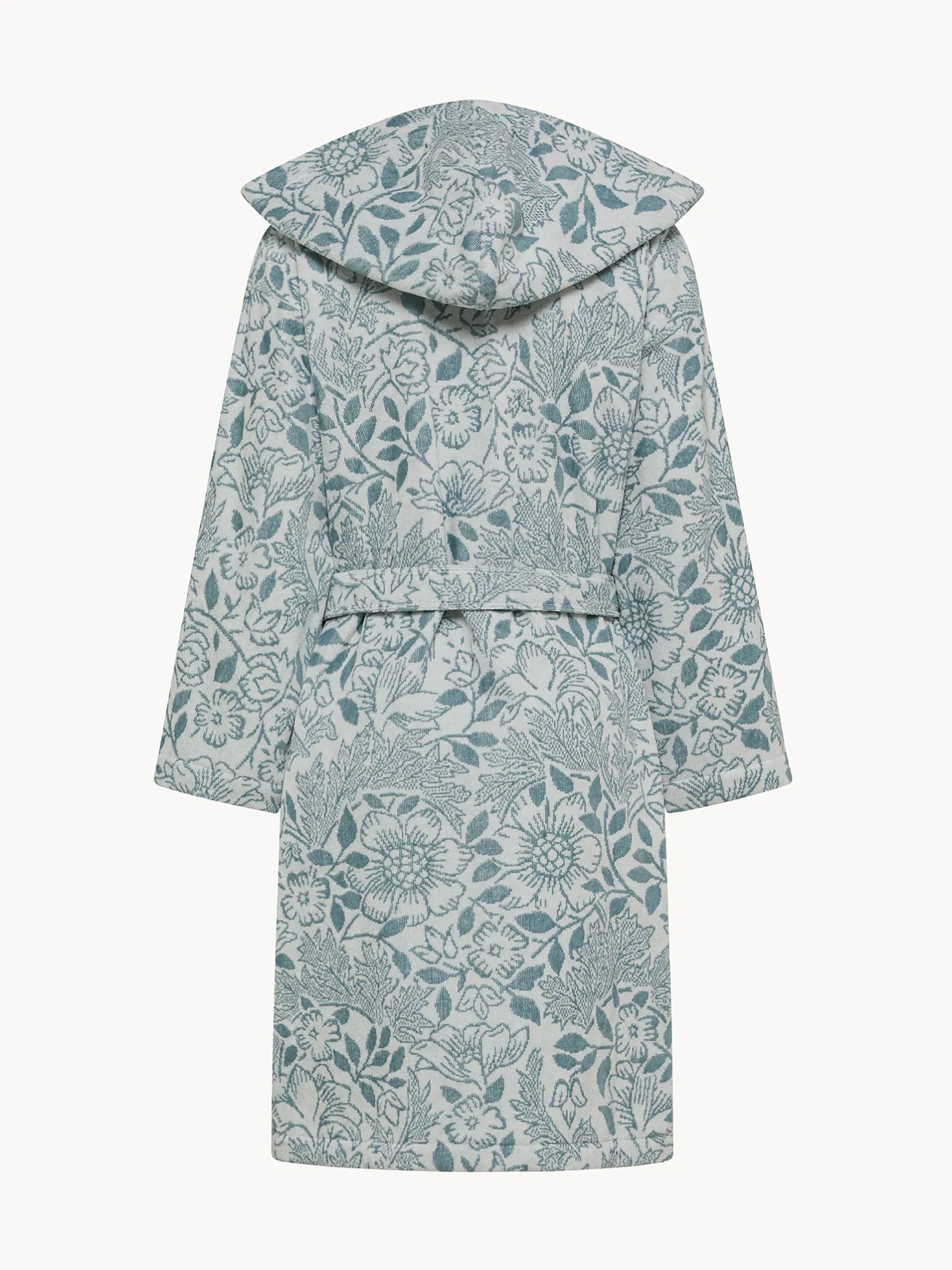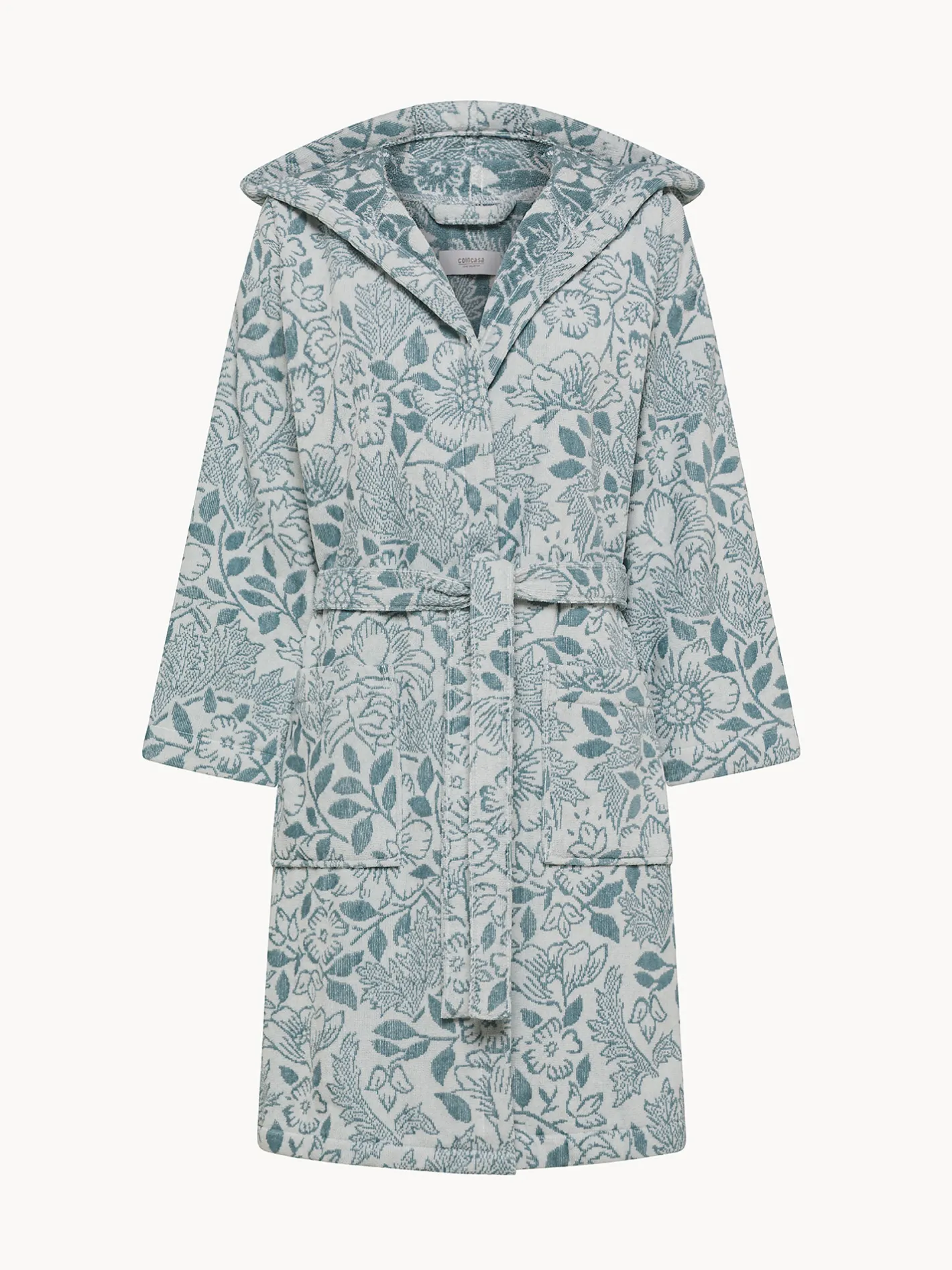 - Accappatoio tinto in filo in puro cotone velour con fantasia floreale, morbido e avvolgente.