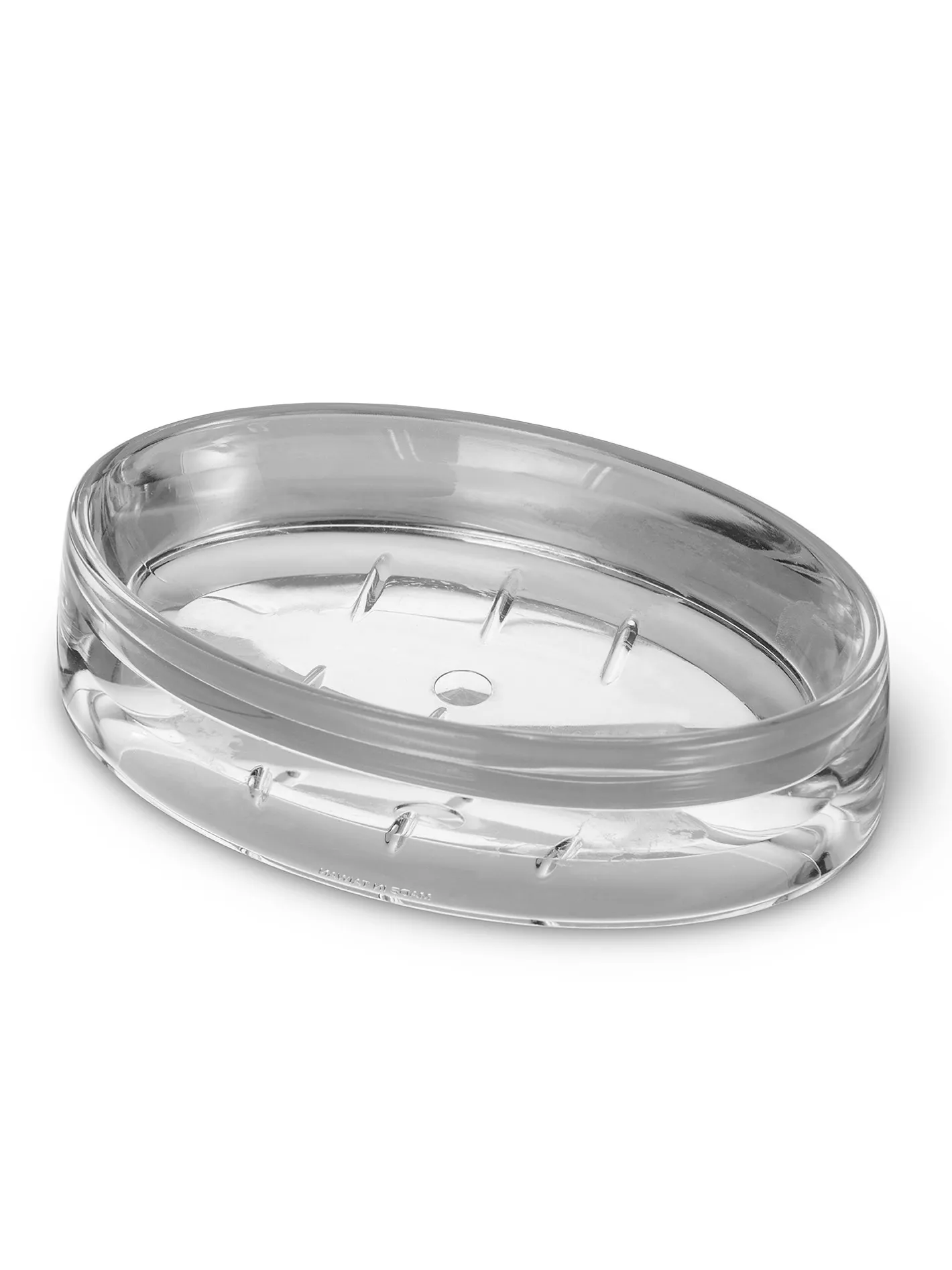 - Moderno porta saponetta in plexiglass, dal finish lucente.