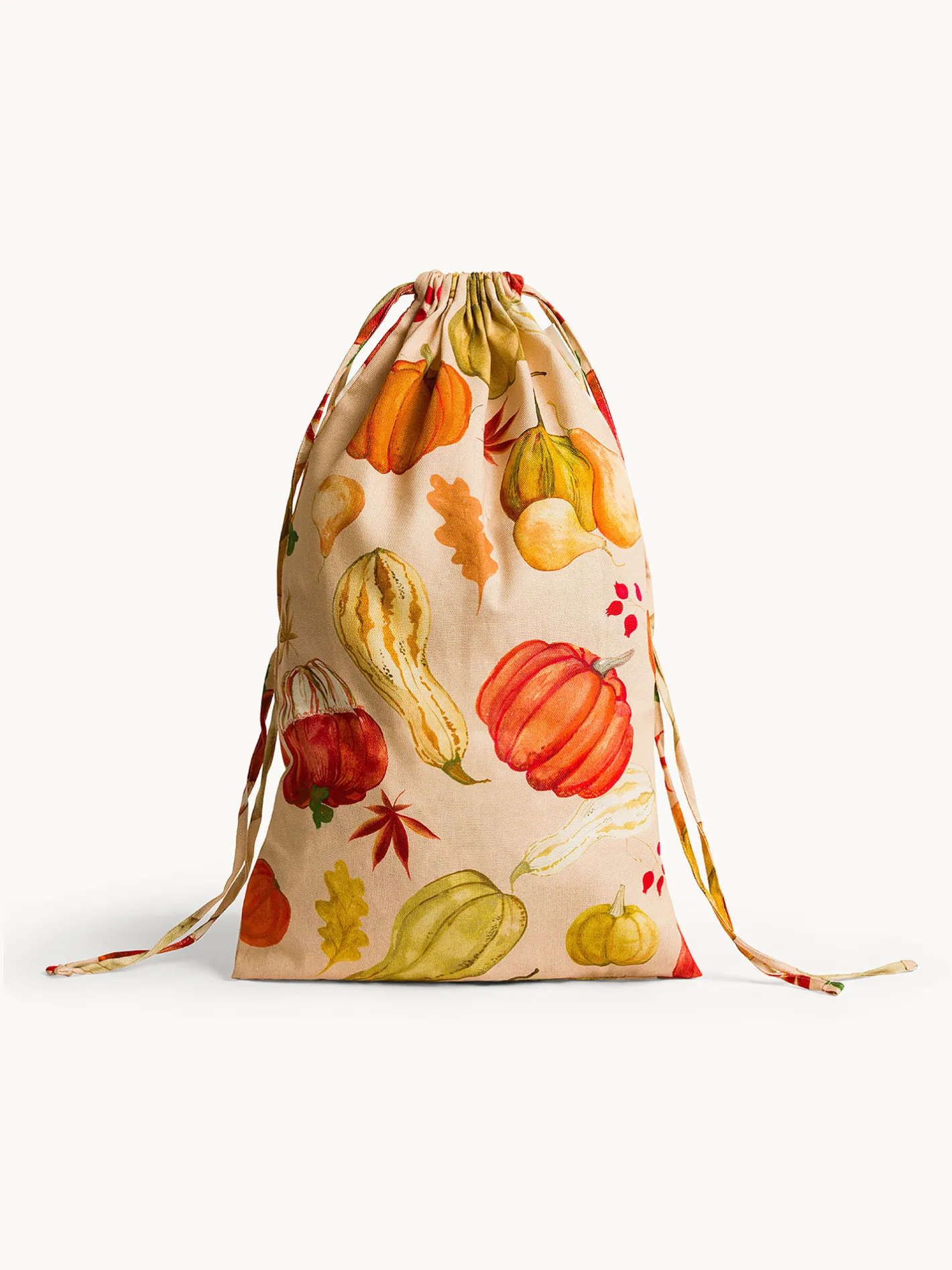 - Sacchetto con lacci regolabili in panama di puro cotone con allegra stampa a zucche, ideale per organizzare piccoli oggetti, accessori o regali con stile. Il tessuto resistente e morbido garantisce praticità e lunga durata, mentre i lacci permettono una chiusura sicura e regolabile, unendo funzionalità ed eleganza. Perfetto per trasportare, conservare o presentare i tuoi oggetti preferiti, questo sacchetto porta un tocco autunnale e festoso in ogni ambiente, combinando design raffinato e praticità quotidiana in un accessorio versatile e originale.