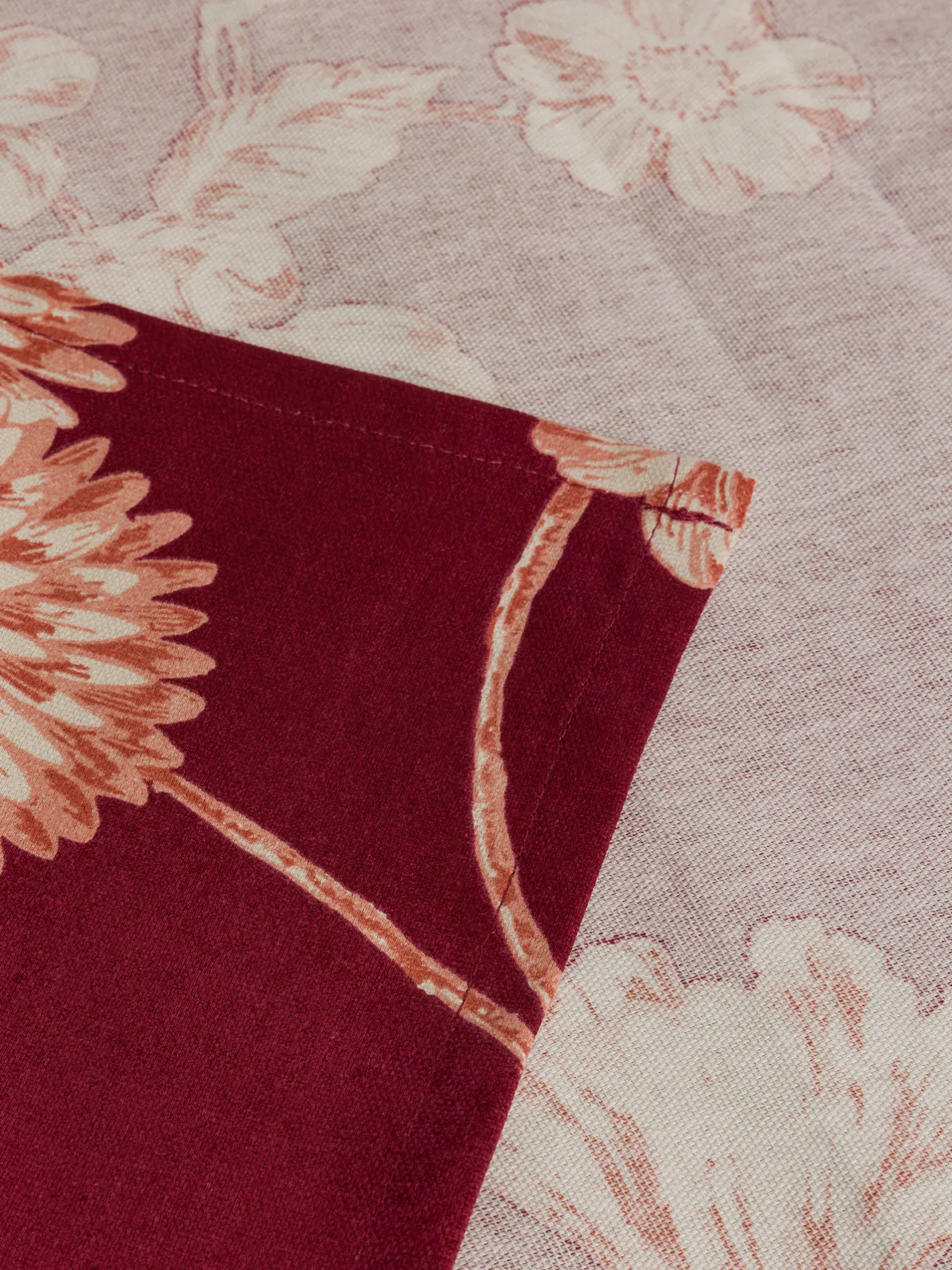 - Telo arredo in resistente panama di cotone, di colore bordeaux con delicata stampa floreale chiara, ideale per aggiungere un tocco elegante e accogliente alla casa. Versatile e pratico, può essere utilizzato come copridivano, copriletto leggero, telo da picnic o per decorare e valorizzare angoli speciali degli ambienti domestici.
