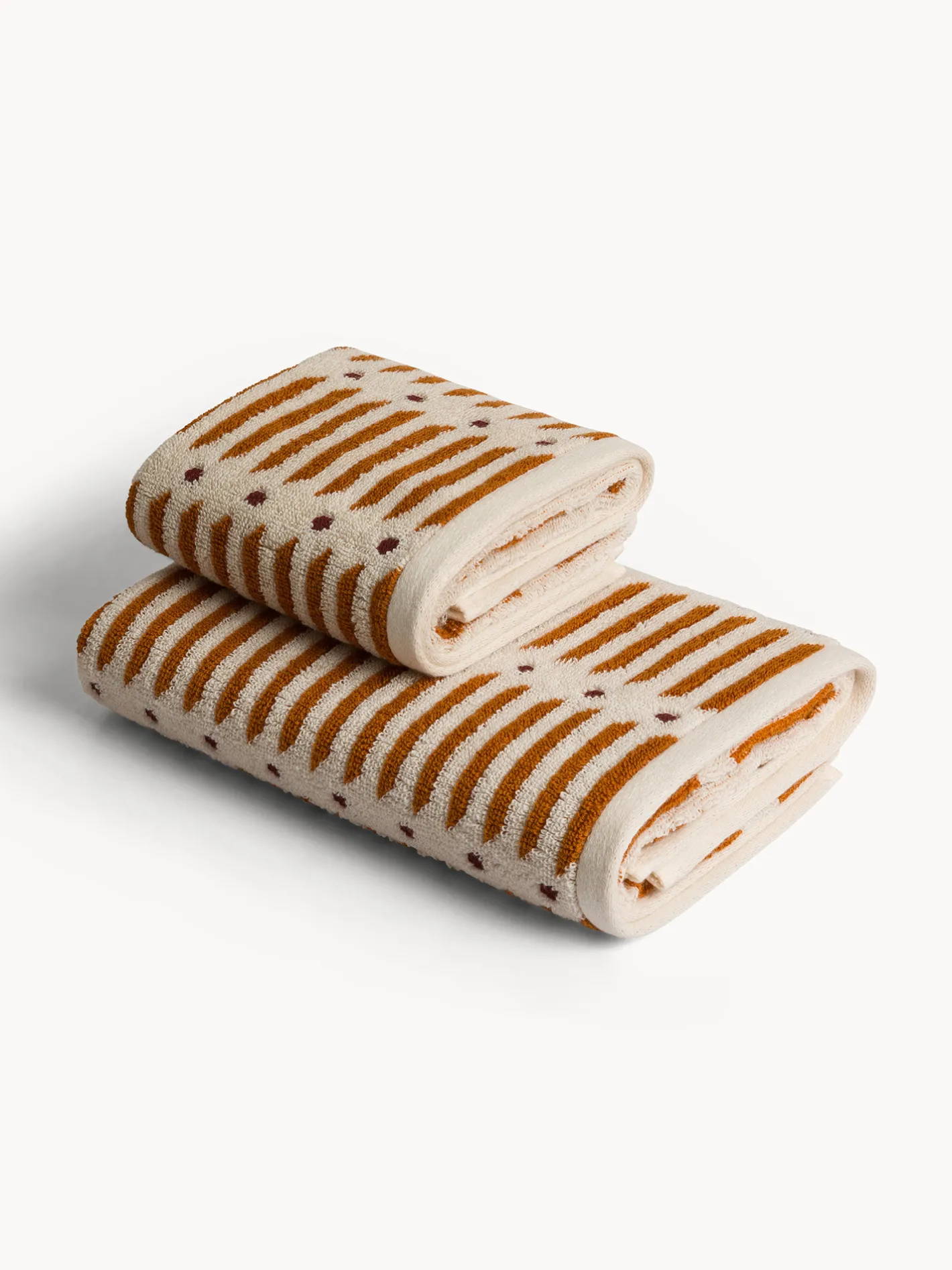 - Asciugamano ospite in spugna di cotone tinto in filo con fantasia geometrica.
