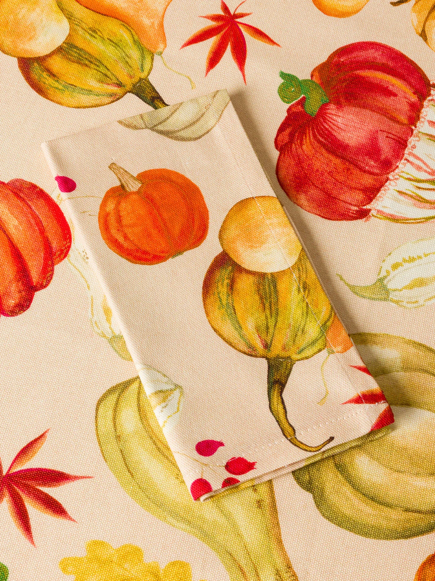 - Set di 2 tovaglioli in panama di puro cotone con allegra stampa a zucche, pensati per portare colore, calore e un tocco autunnale alla tavola. Il tessuto resistente e morbido garantisce comfort e lunga durata, mentre il motivo originale trasforma anche i pasti quotidiani in momenti speciali. Ideali da abbinare alla tovaglia coordinata o da usare singolarmente, questi tovaglioli uniscono praticità e stile, regalando un dettaglio decorativo perfetto per cene di stagione, pranzi in famiglia o occasioni festive, con un fascino rustico e conviviale.