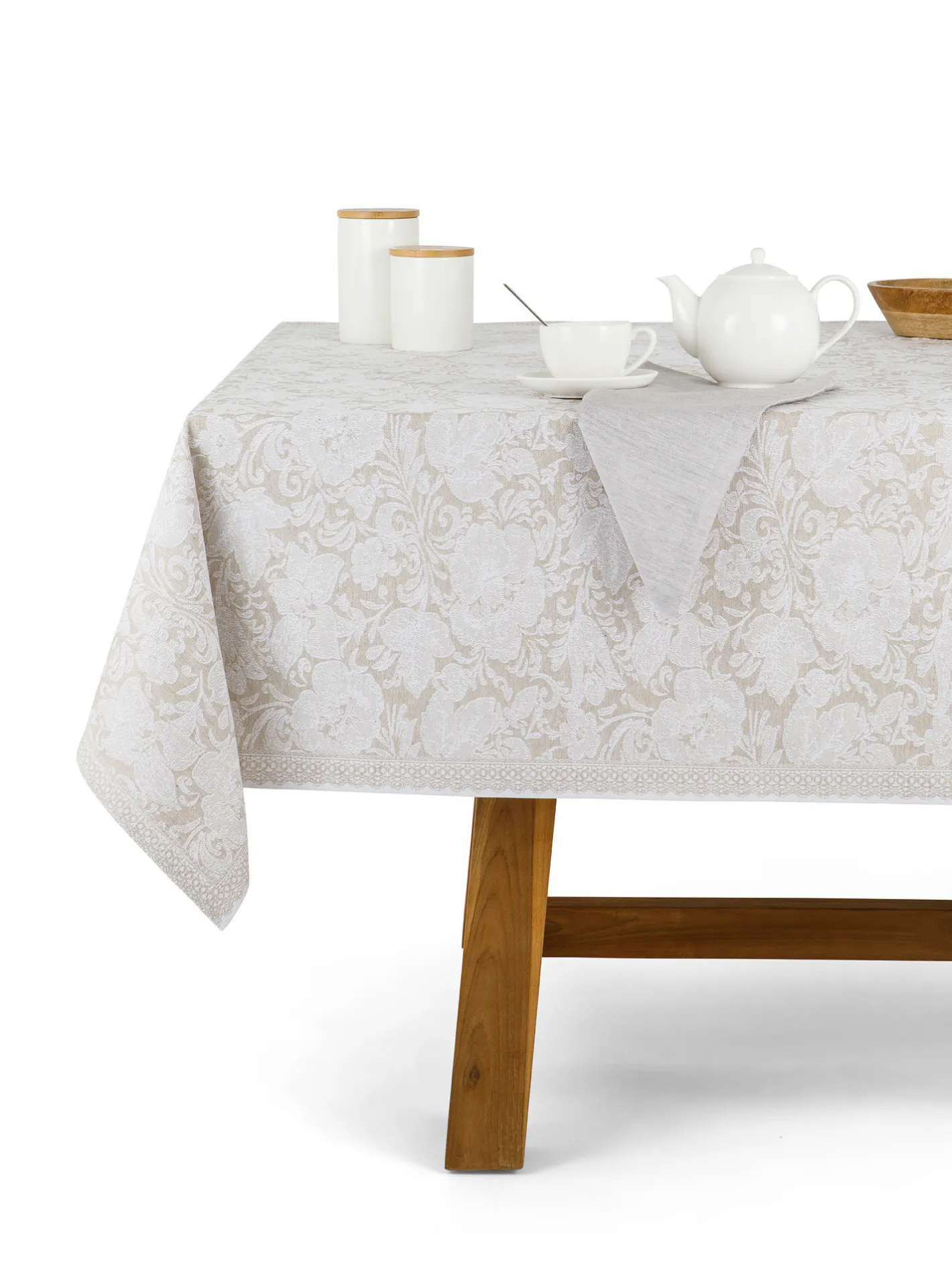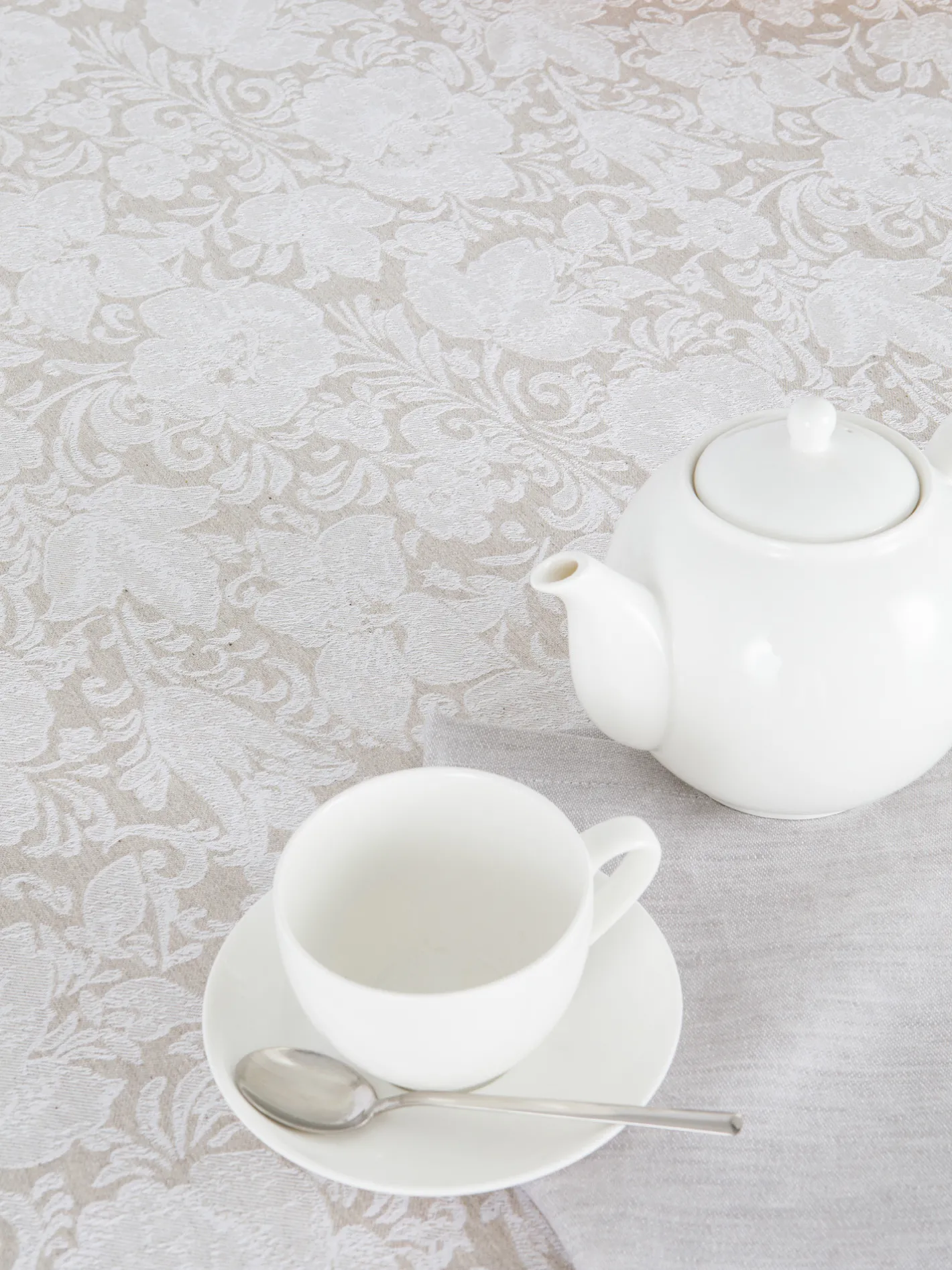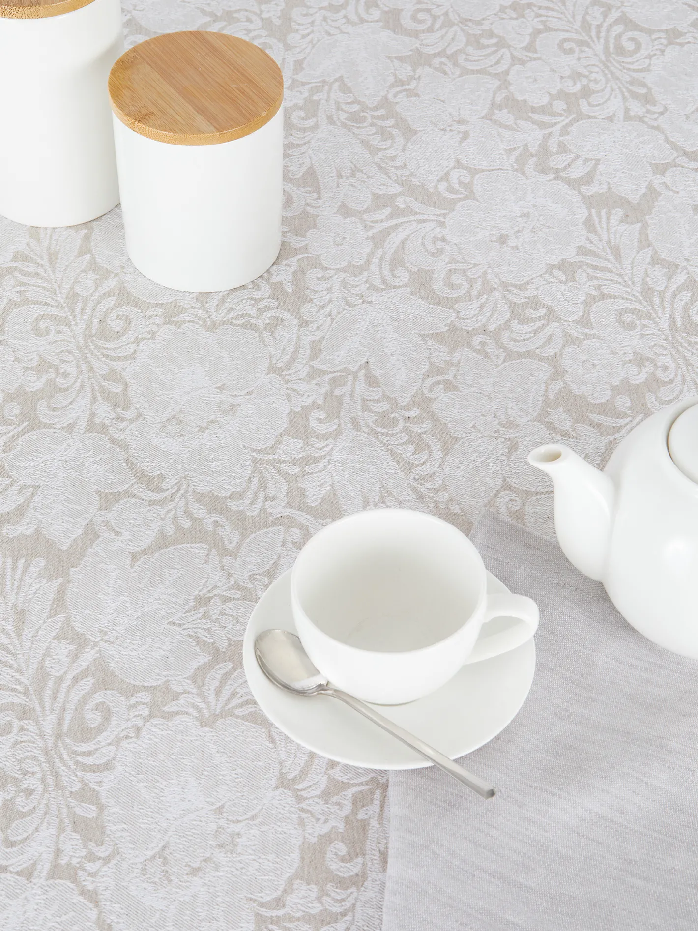 - Copritavolo a trama jacquard in cotone, viscosa e lino. Manifattura europea.
