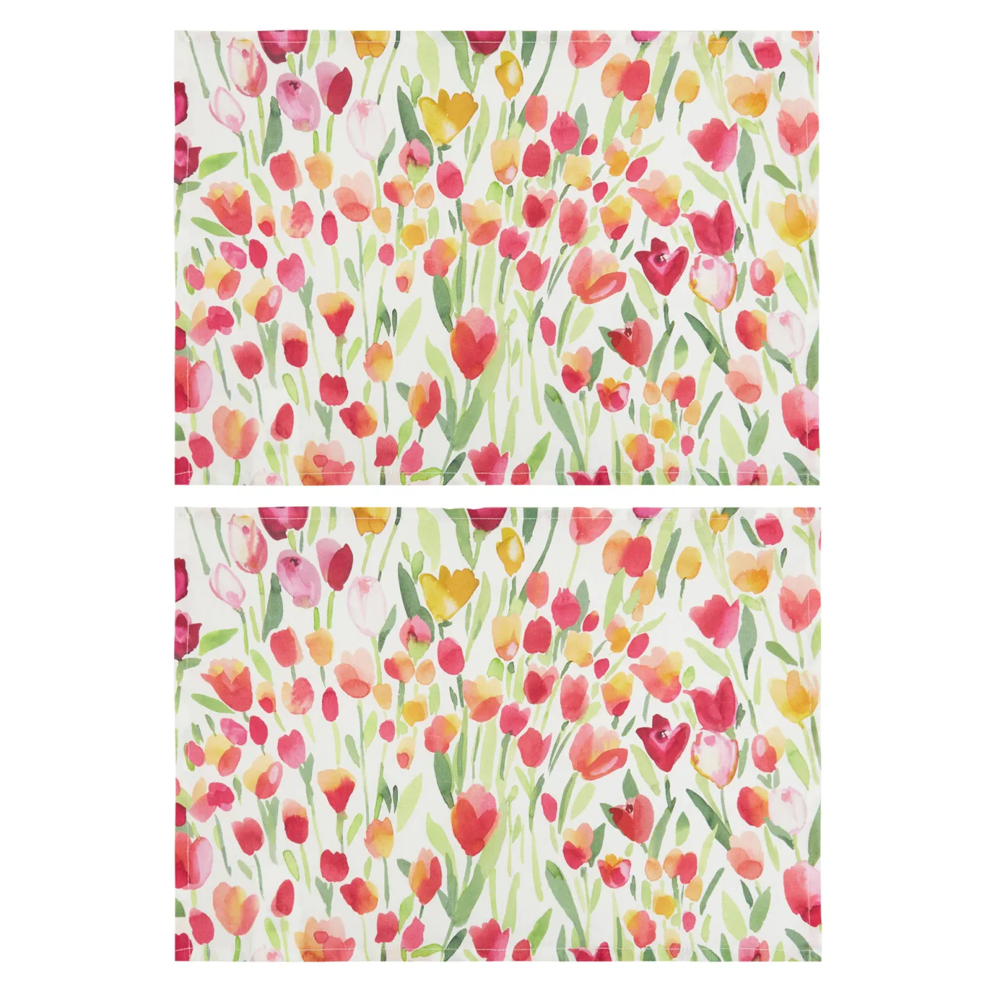 - Set di 2 tovagliette in panama di puro cotone con stampa digitale tulipani