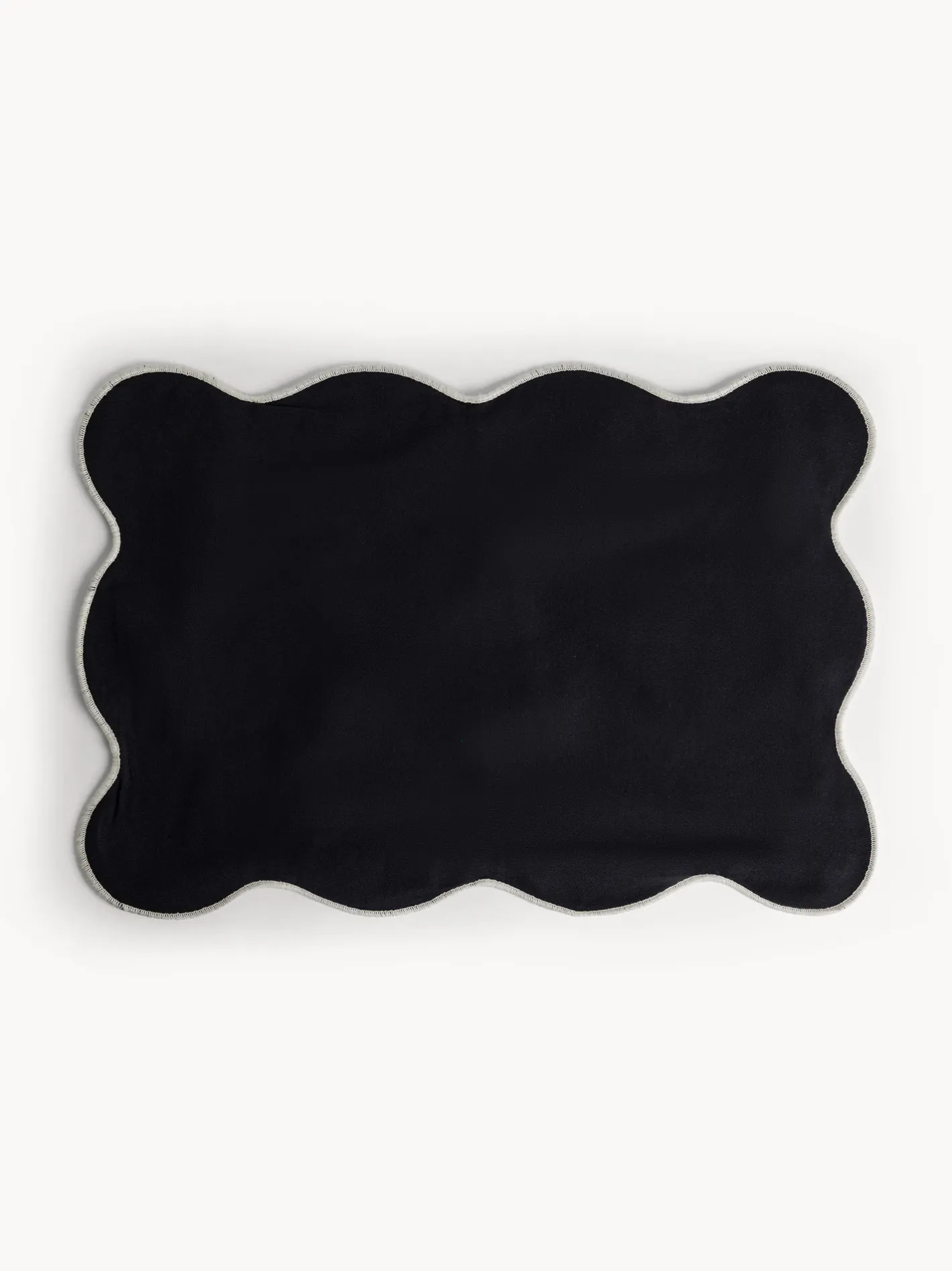 - Tovaglietta in cotone chambray con bordi smerlati e overlock a contrasto. Disponibile in 12 colori.