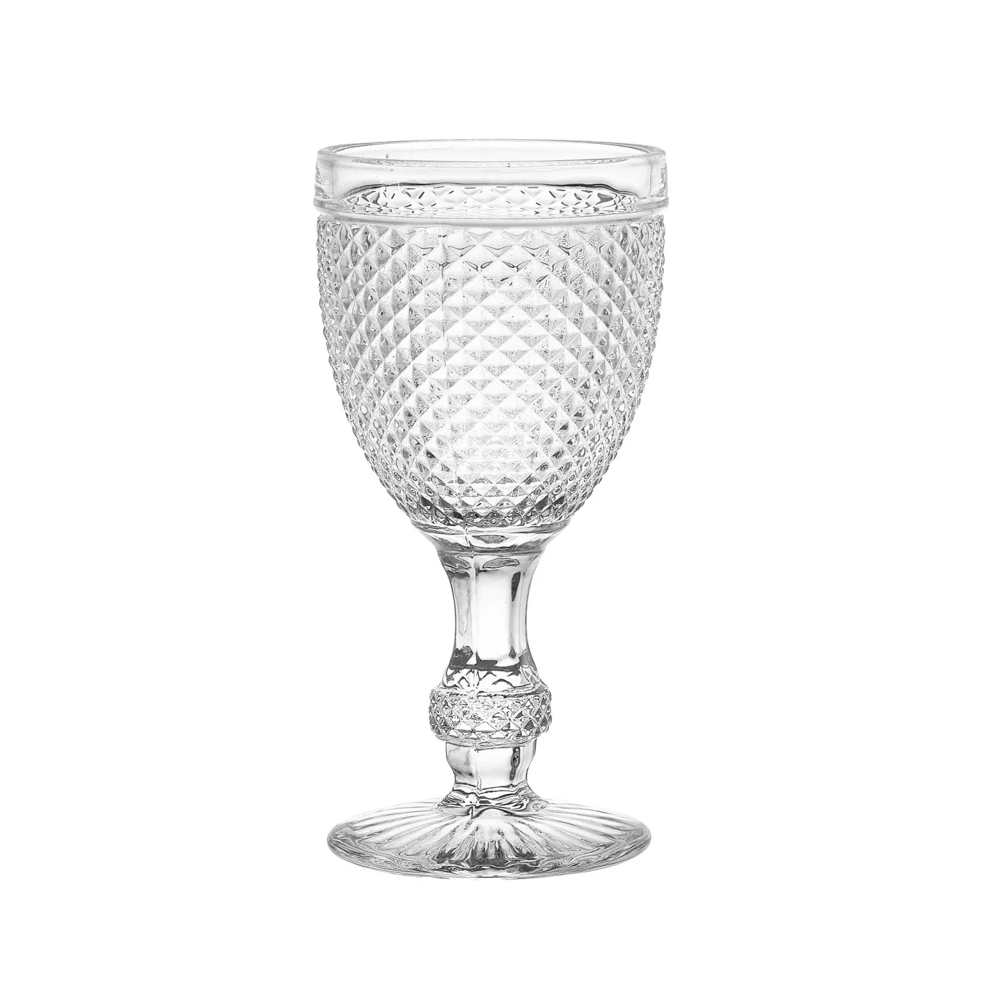 - Calice vino in vetro decorato con sfaccettature effetto diamante.