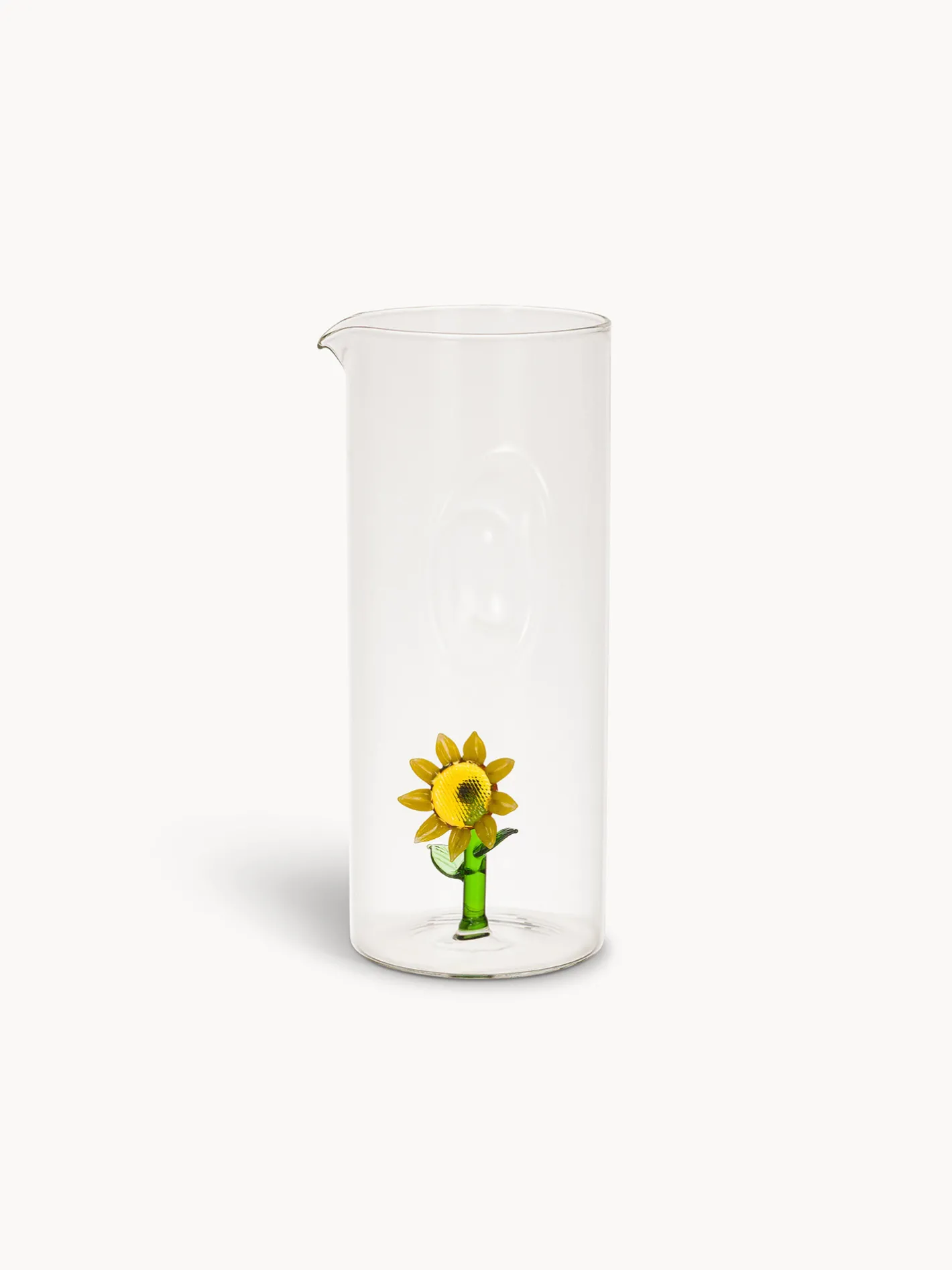 - Caraffa in vetro borosilicato con delicato dettaglio a forma di fiore, perfetta per servire acqua, succhi, bevande fredde o cocktail con stile e raffinatezza. Il vetro resistente e leggero garantisce praticità e durata nell’uso quotidiano, mentre il motivo floreale aggiunge un tocco decorativo e scenografico alla tavola.
