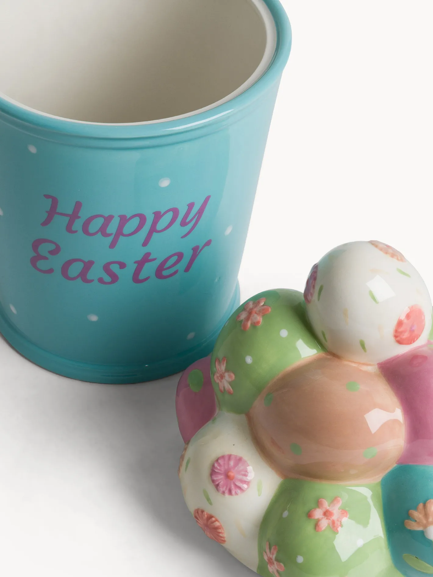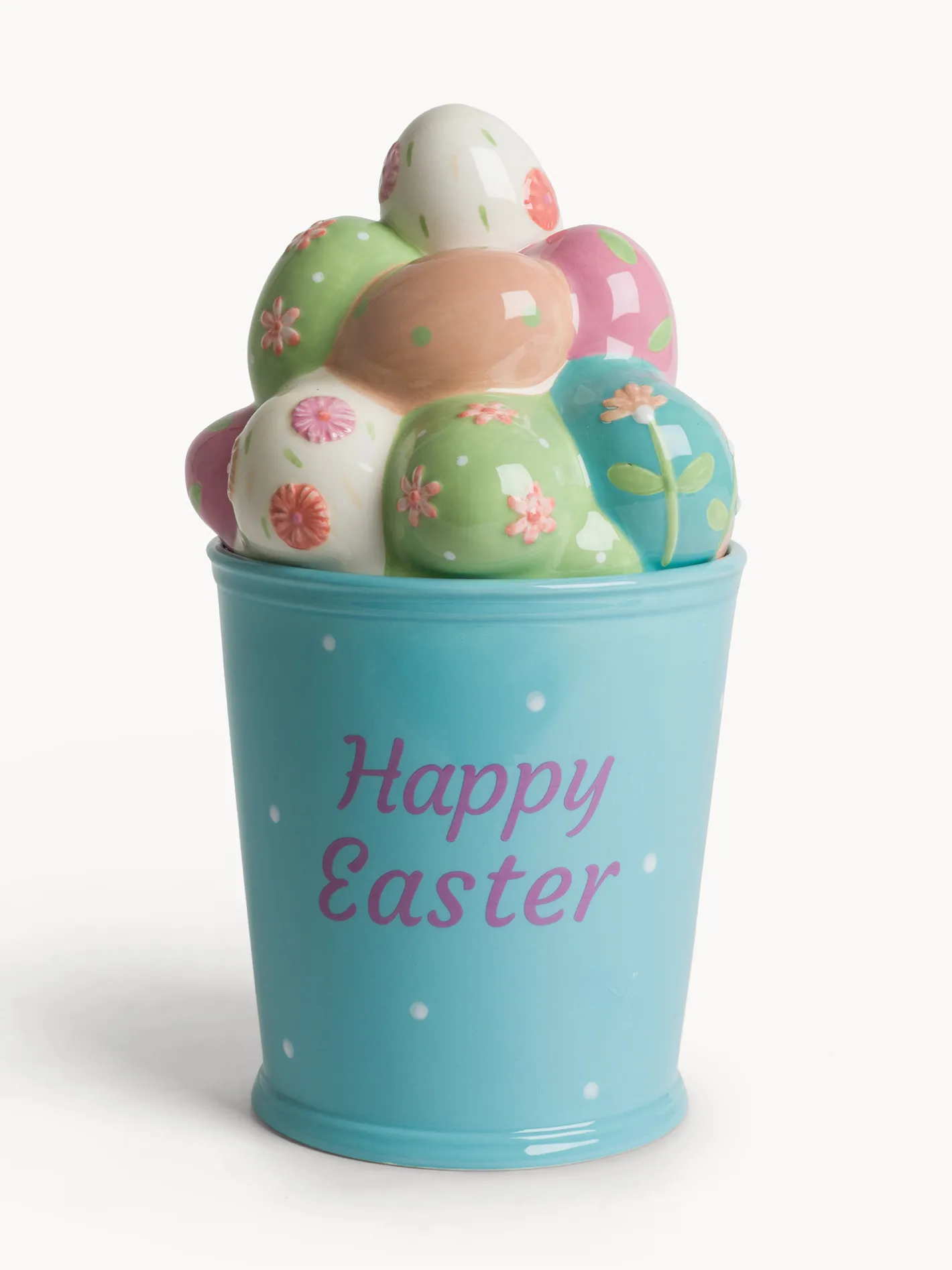 - Biscottiera “happy easter” in ceramica decorata con applicazione uova.