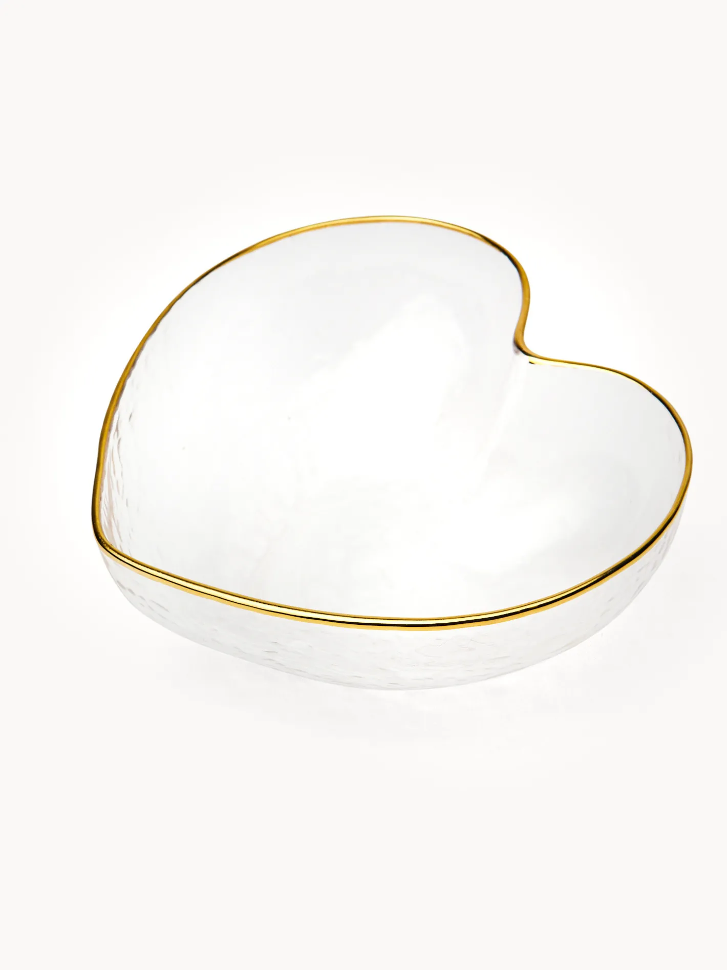 - Coppetta in vetro a forma di cuore con filo oro. Romantica ed elegante, questa coppetta unisce design raffinato e funzionalità, perfetta per servire dolcetti, snack o come elemento decorativo.