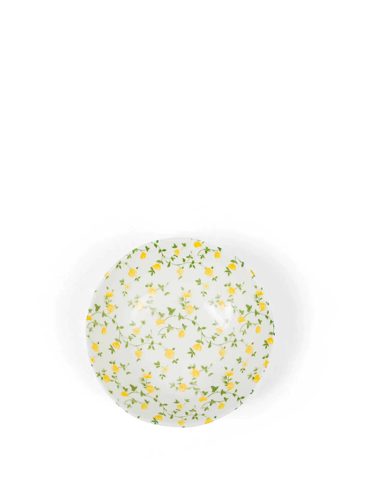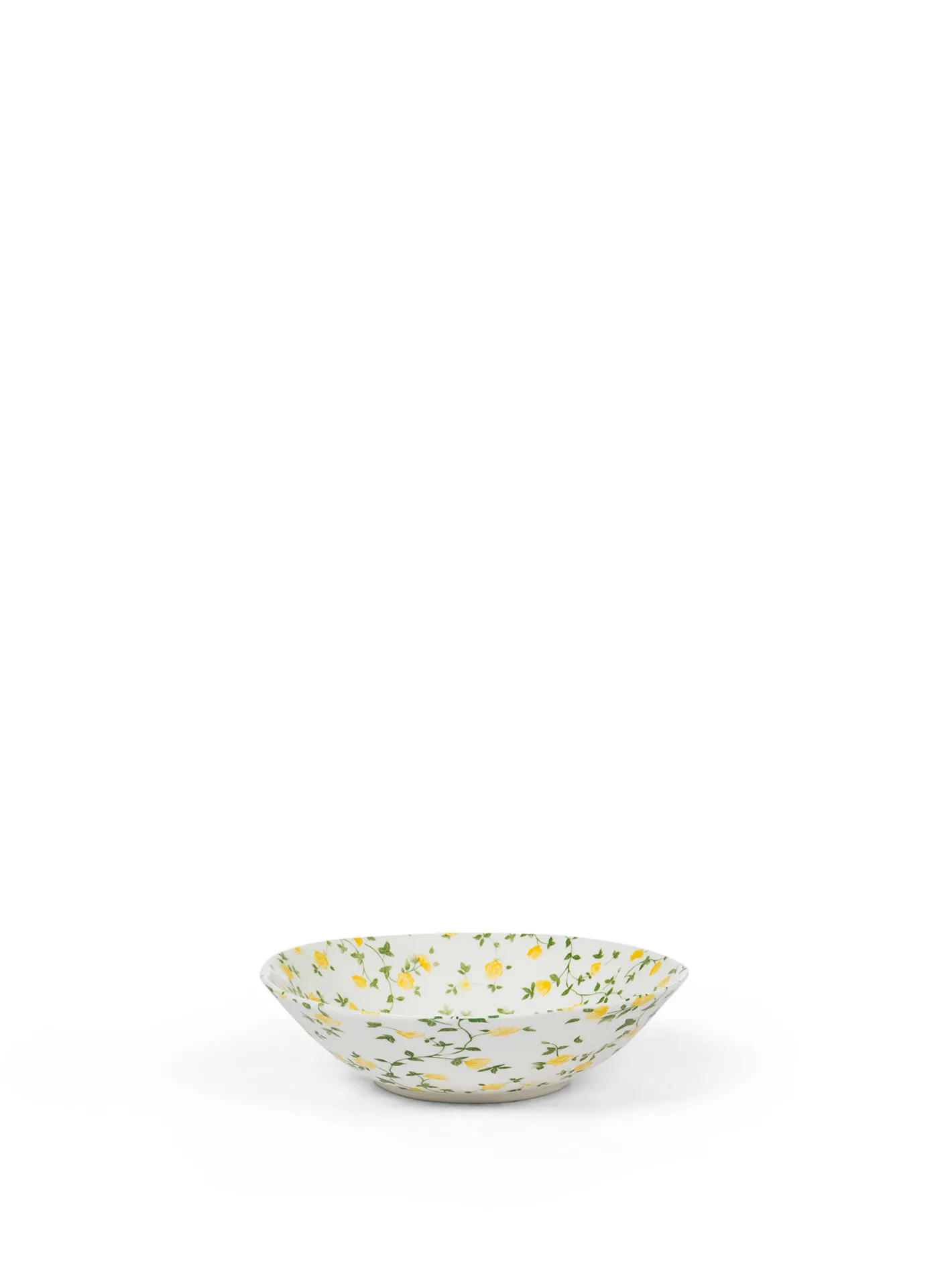- Piatto fondo in porcellana motivo fiorellino giallo.