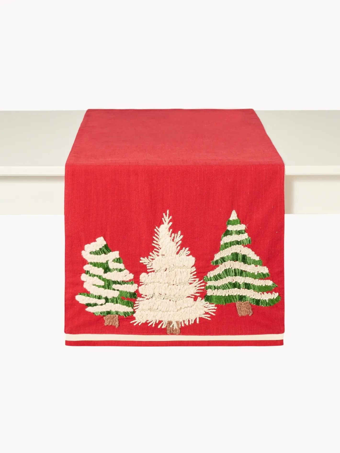 - Runner in puro cotone ricamato. Realizzato in puro cotone, l’elegante ricamo dei pini innevati dona eleganza e tepore alla tavola invernale.
