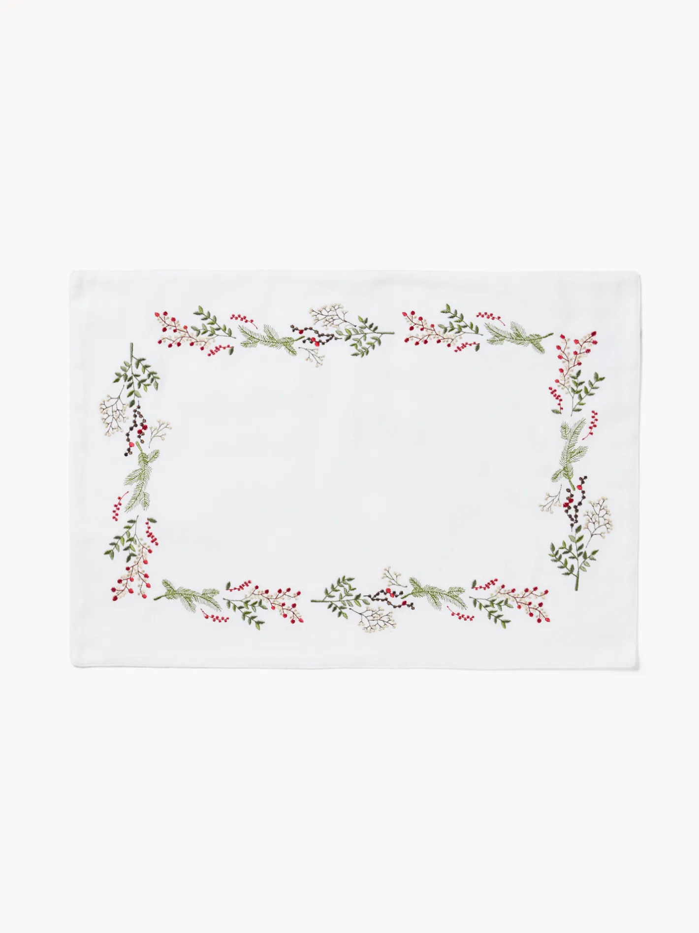 - Tovaglietta twill di puro cotone con ricamo agrifoglio.