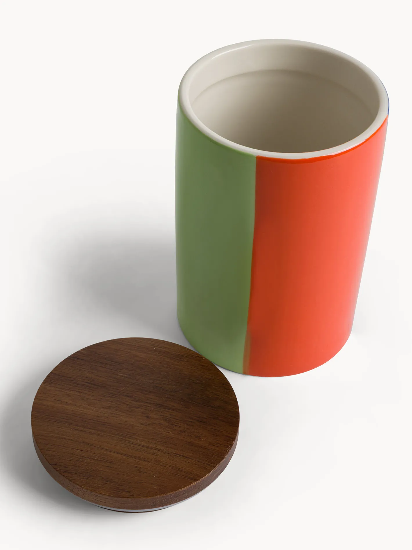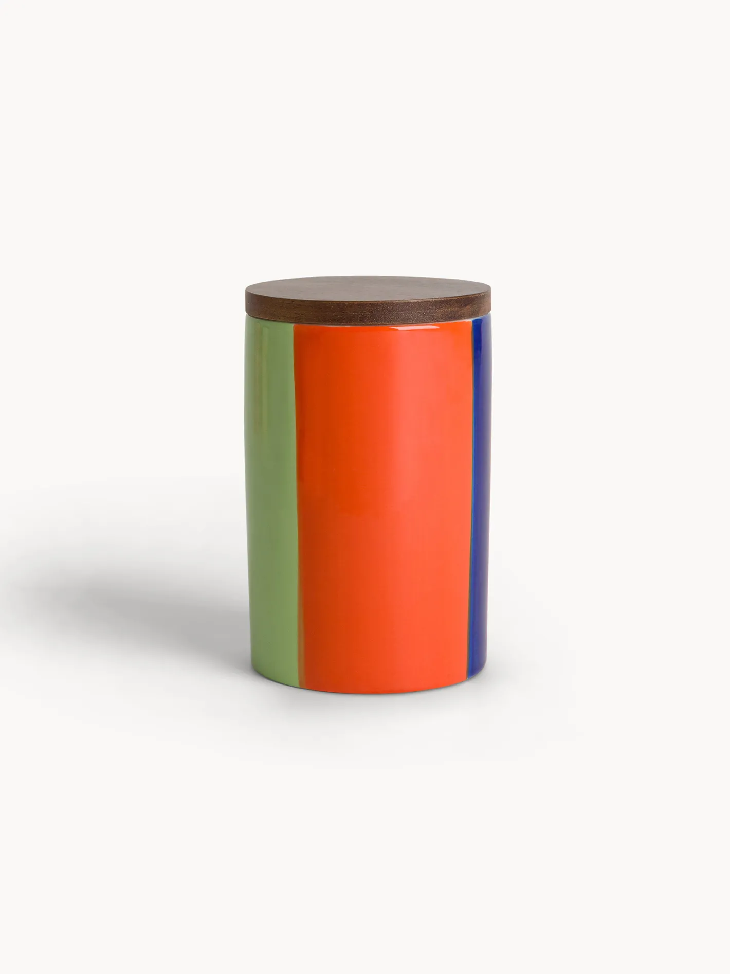 - Barattolo in ceramica dura. Creatività a tavola, righe, pois e motivi astratti si incontrano sulle ceramiche artigianali dalle tonalità vibranti. Dettagli pittorici e finiture smaltate rendono unico ogni pezzo.
